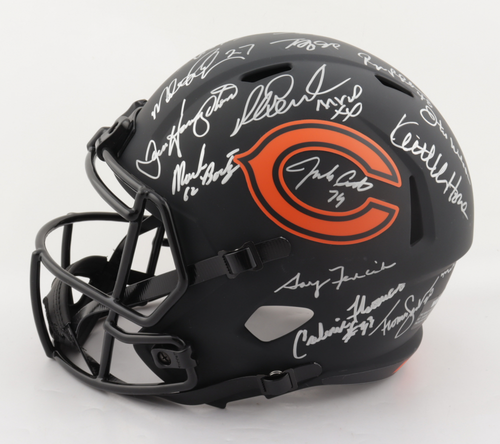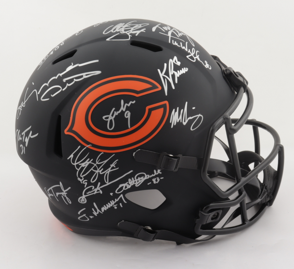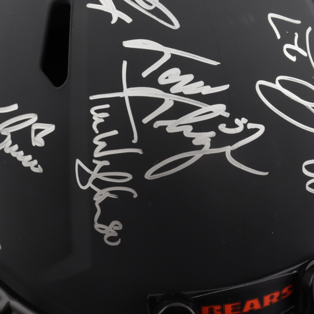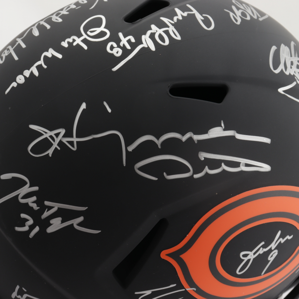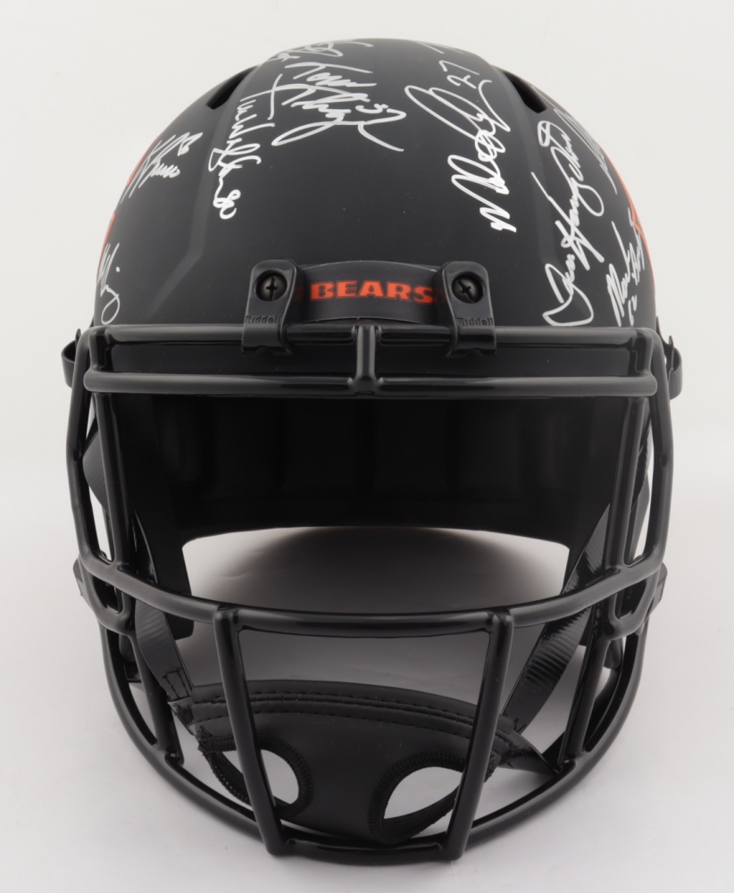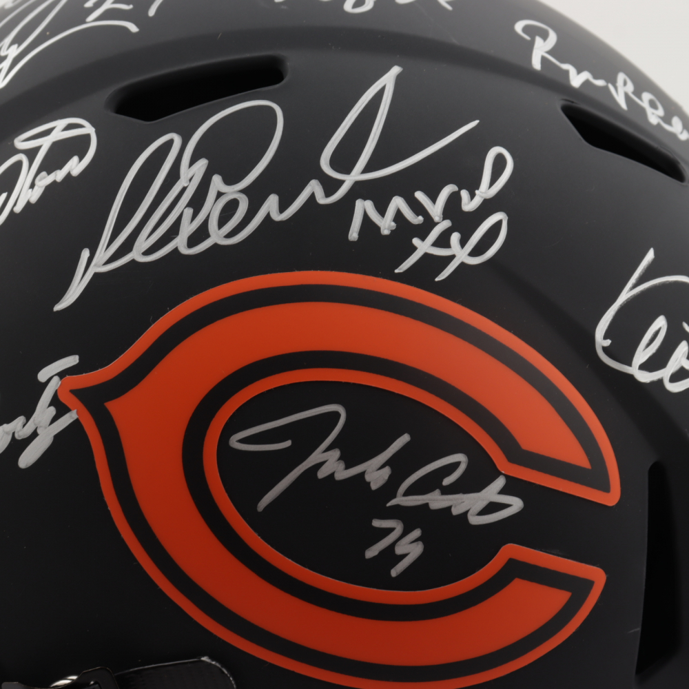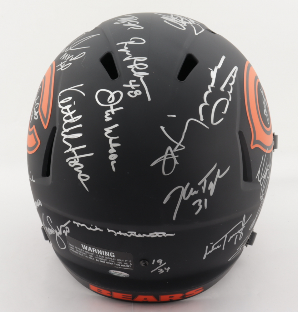 Riddell Chicago Bears full-size replica Eclipse Alternate Speed helmet. Hand-signed and inscribed by (28) including Mike Ditka, Jim McMahon, Mike Singletary, Richard Dent, Dan Hampton, Steve McMichael, Gary Fencik, William Perry, Jay Hilgenberg, Willie Gault, Wilber Marshall, Leslie Frazier, Jim Covert, Mark Bortz, Keith Van Horne, Tom Thayer, Steve Fuller, Mike Tomczak, Kevin Butler, Otis Wilson, Dennis McKinnon, Henry Waechter, Emery Moorehead, Denis Gentry, Reggie Phillips, Jim Morrissey, Maury Buford, Calvin Thomas, Thomas Sanders, Ken Taylor, and Mike Hartenstine. The helmet is limited edition and has been hand-numbered #/34.