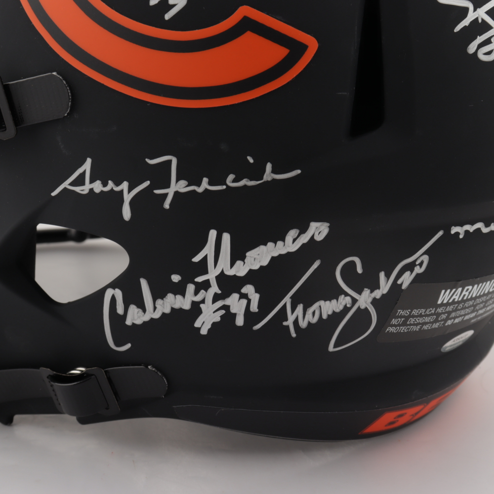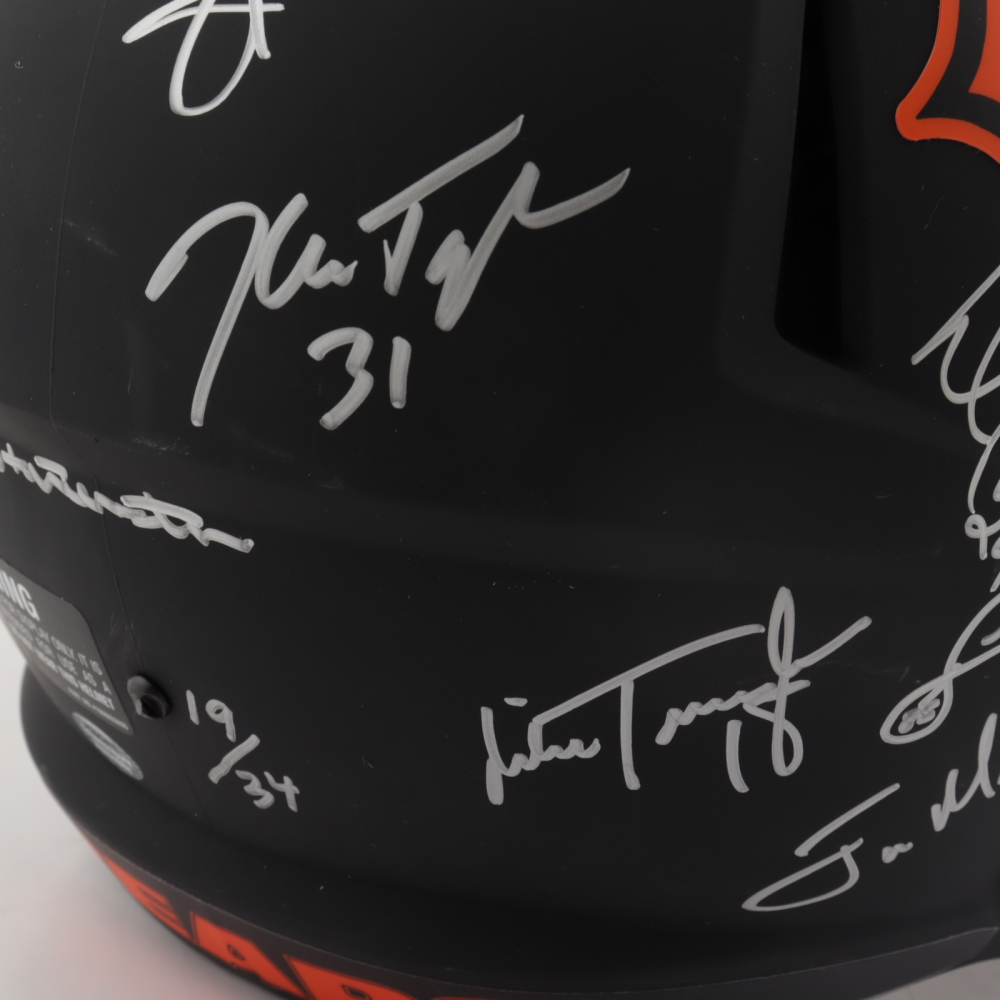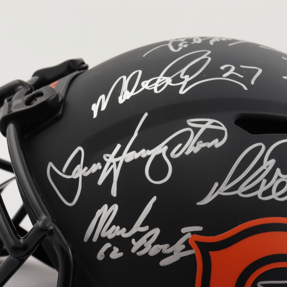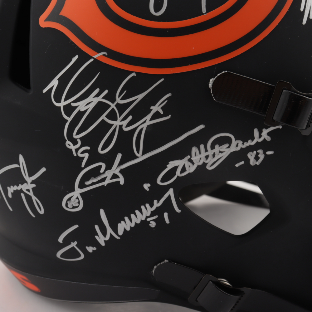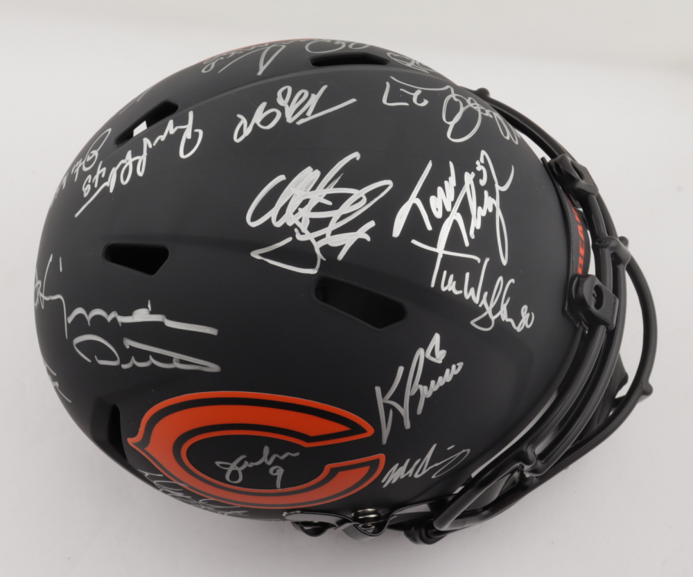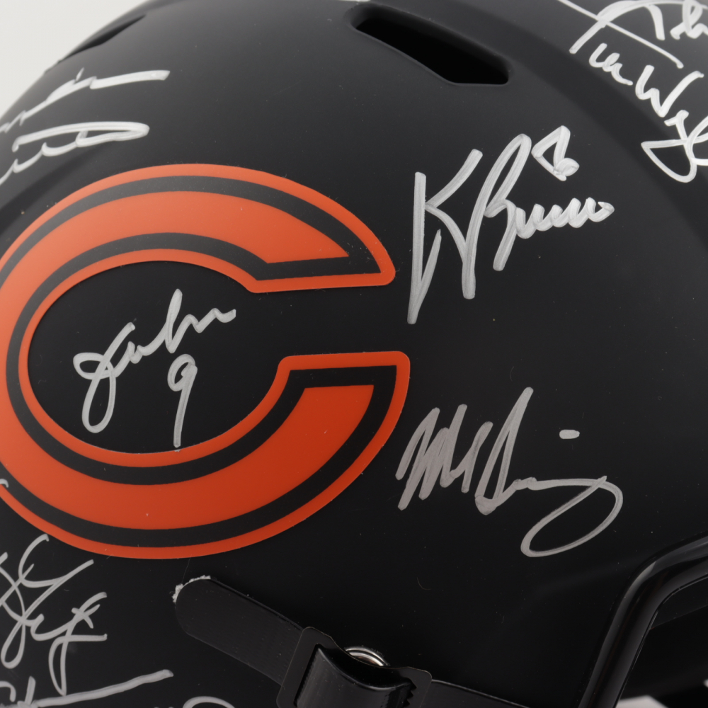 Riddell Chicago Bears full-size replica Eclipse Alternate Speed helmet. Hand-signed and inscribed by (28) including Mike Ditka, Jim McMahon, Mike Singletary, Richard Dent, Dan Hampton, Steve McMichael, Gary Fencik, William Perry, Jay Hilgenberg, Willie Gault, Wilber Marshall, Leslie Frazier, Jim Covert, Mark Bortz, Keith Van Horne, Tom Thayer, Steve Fuller, Mike Tomczak, Kevin Butler, Otis Wilson, Dennis McKinnon, Henry Waechter, Emery Moorehead, Denis Gentry, Reggie Phillips, Jim Morrissey, Maury Buford, Calvin Thomas, Thomas Sanders, Ken Taylor, and Mike Hartenstine. The helmet is limited edition and has been hand-numbered #/34.