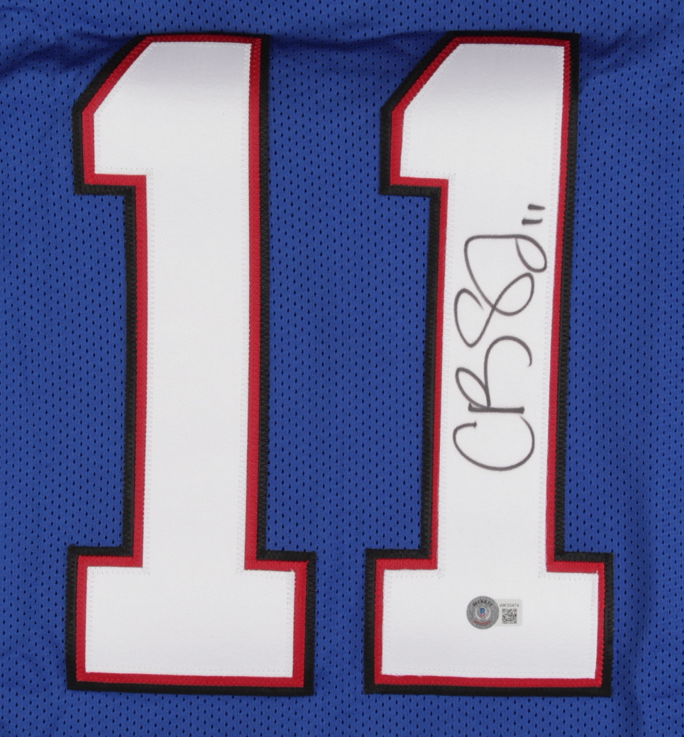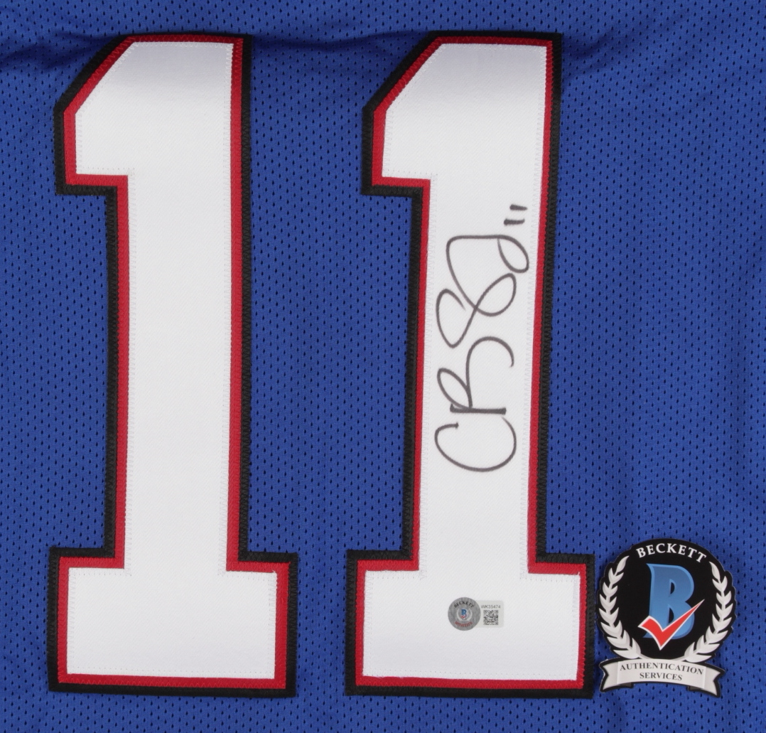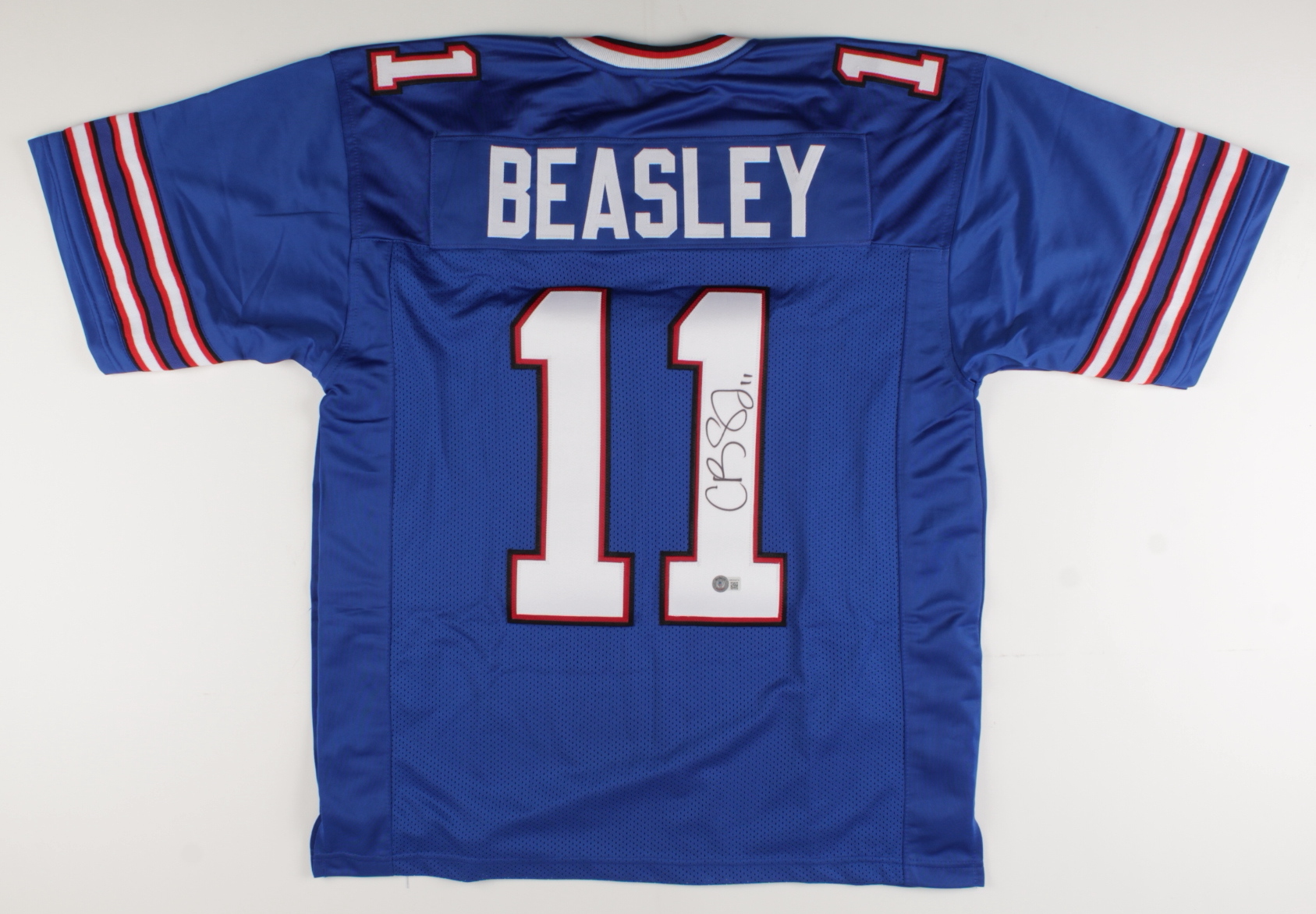Custom on-field style jersey. Everything is sewn on, size XL. Hand-signed by Cole Beasley.