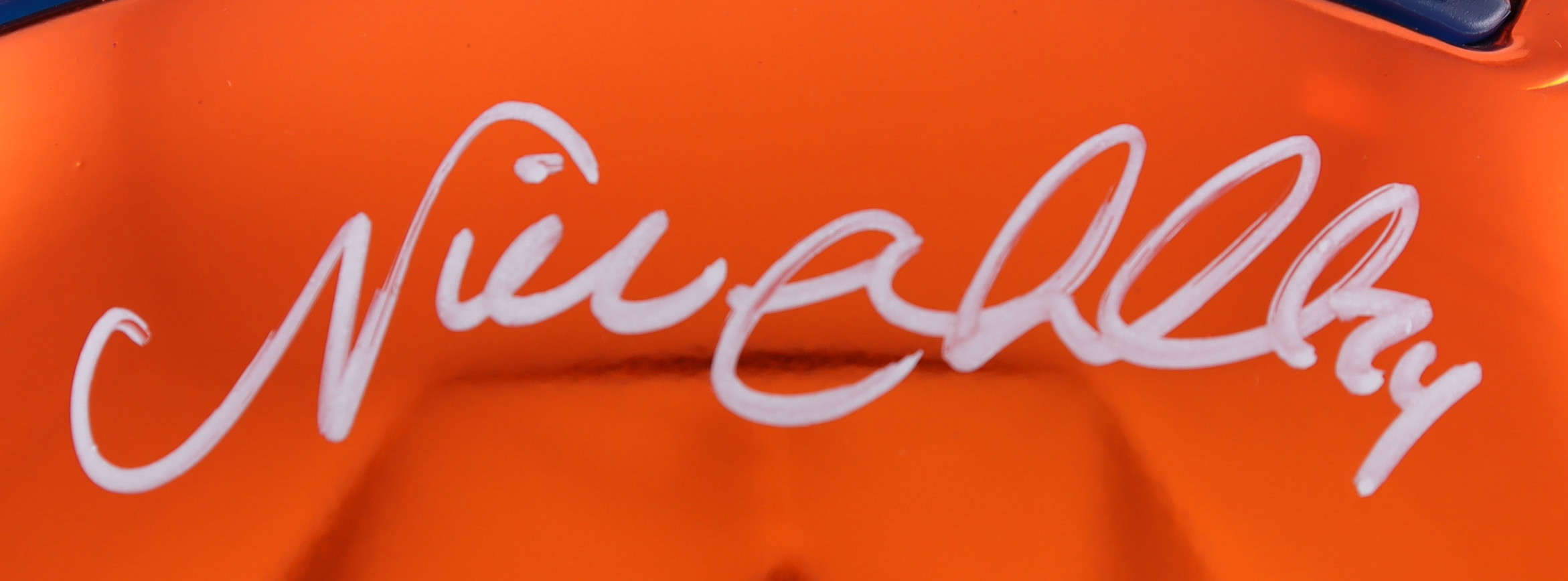 Schutt full-size authentic on-field F7 helmet. Has been hand-signed by Nick Chubb.