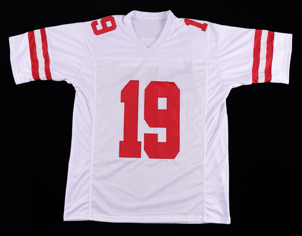 Custom on-field style jersey. Everything is sewn on, size XL. Has been hand-signed by Deebo Samuel.
