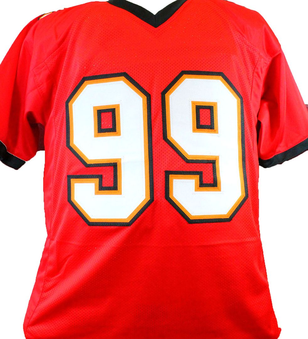 Custom on-field style jersey. Everything sewn on, size XL. Hand-signed and inscribed by Warren Sapp (HOF).