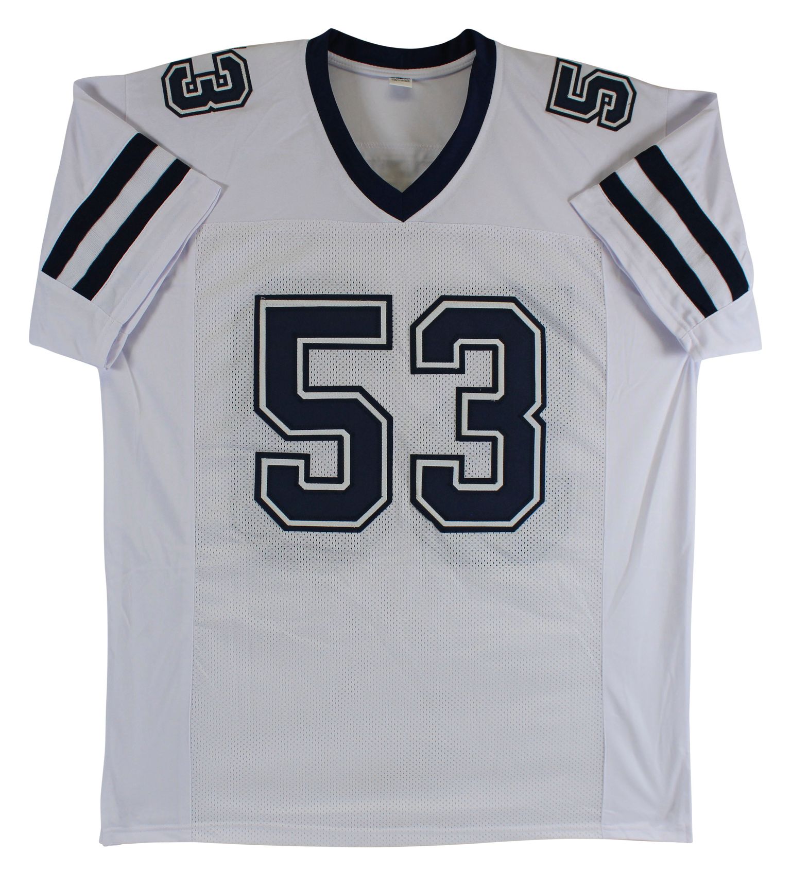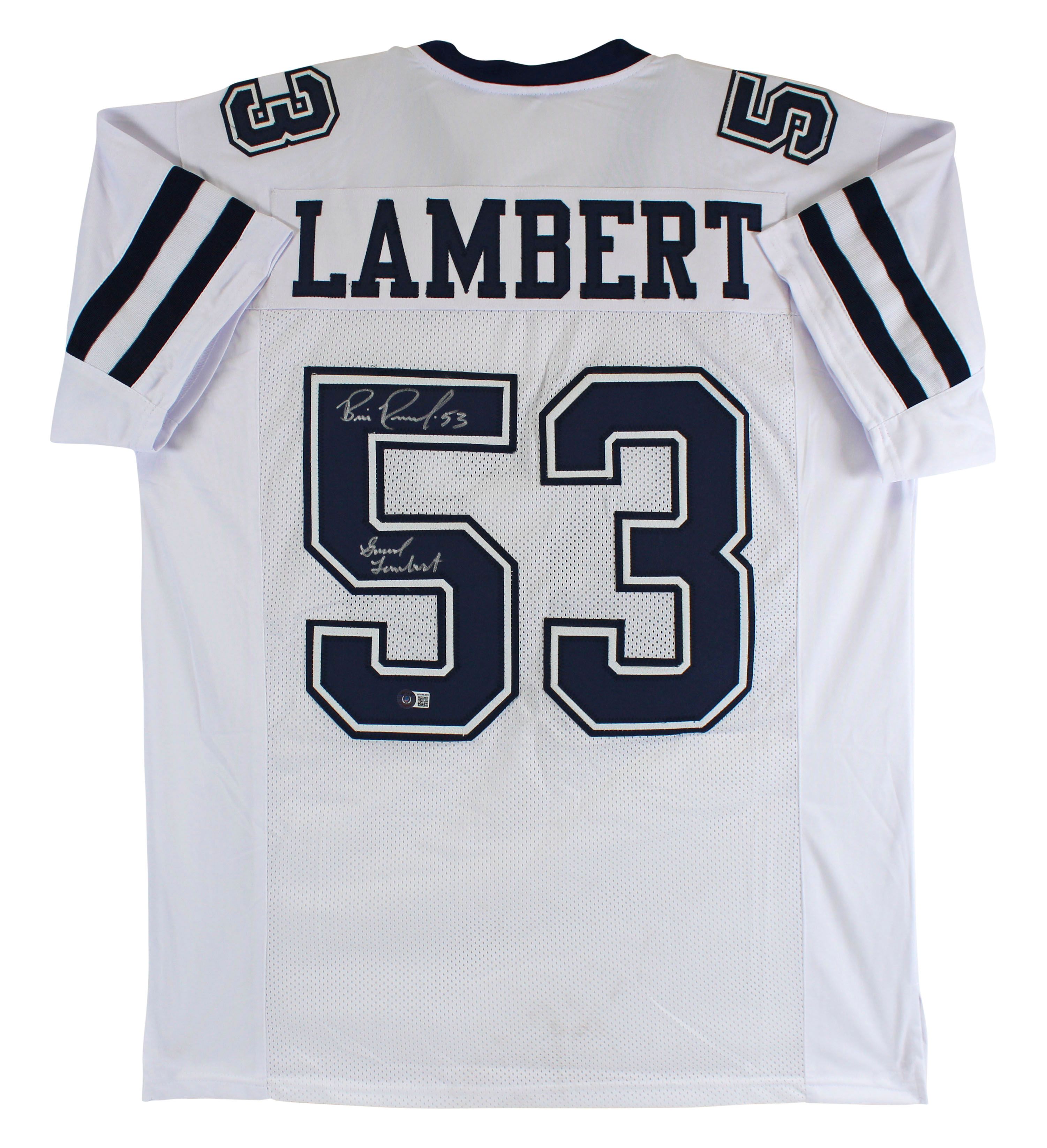 Custom on-field style jersey. Everything is sewn on, size XL. Hand-signed by Bill Romanowski (Guard Lambert).