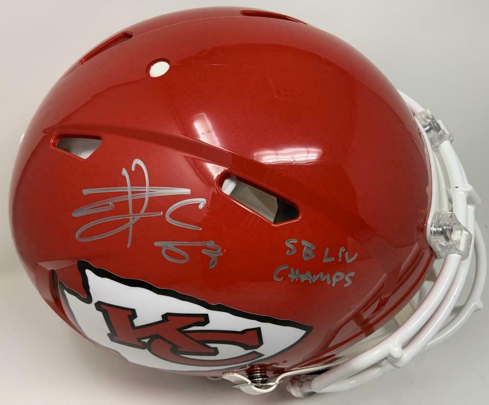 Travis Kelce Signed Chiefs Full-Size Authentic On-Field Speed Helmet Inscribed "SB LIV Champs" (Fanatics)