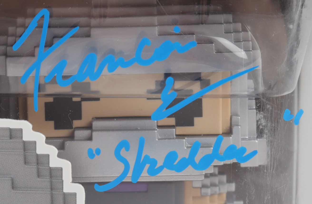 Funko Pop! vinyl figure measures approximately 4" tall and has been hand-signed and inscribed on the packaging by Francois Chau.
