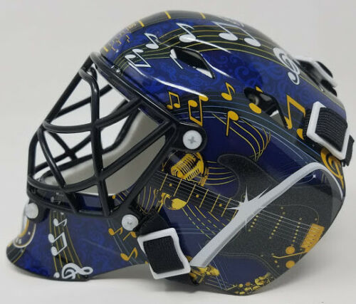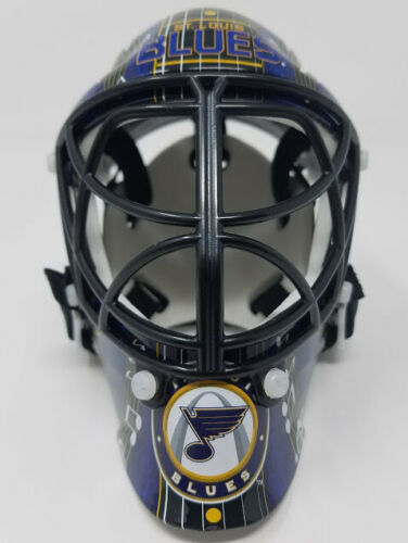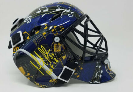 St. Louis Blues mini goalie mask. Hand-signed and inscribed by Martin Brodeur (HOF).