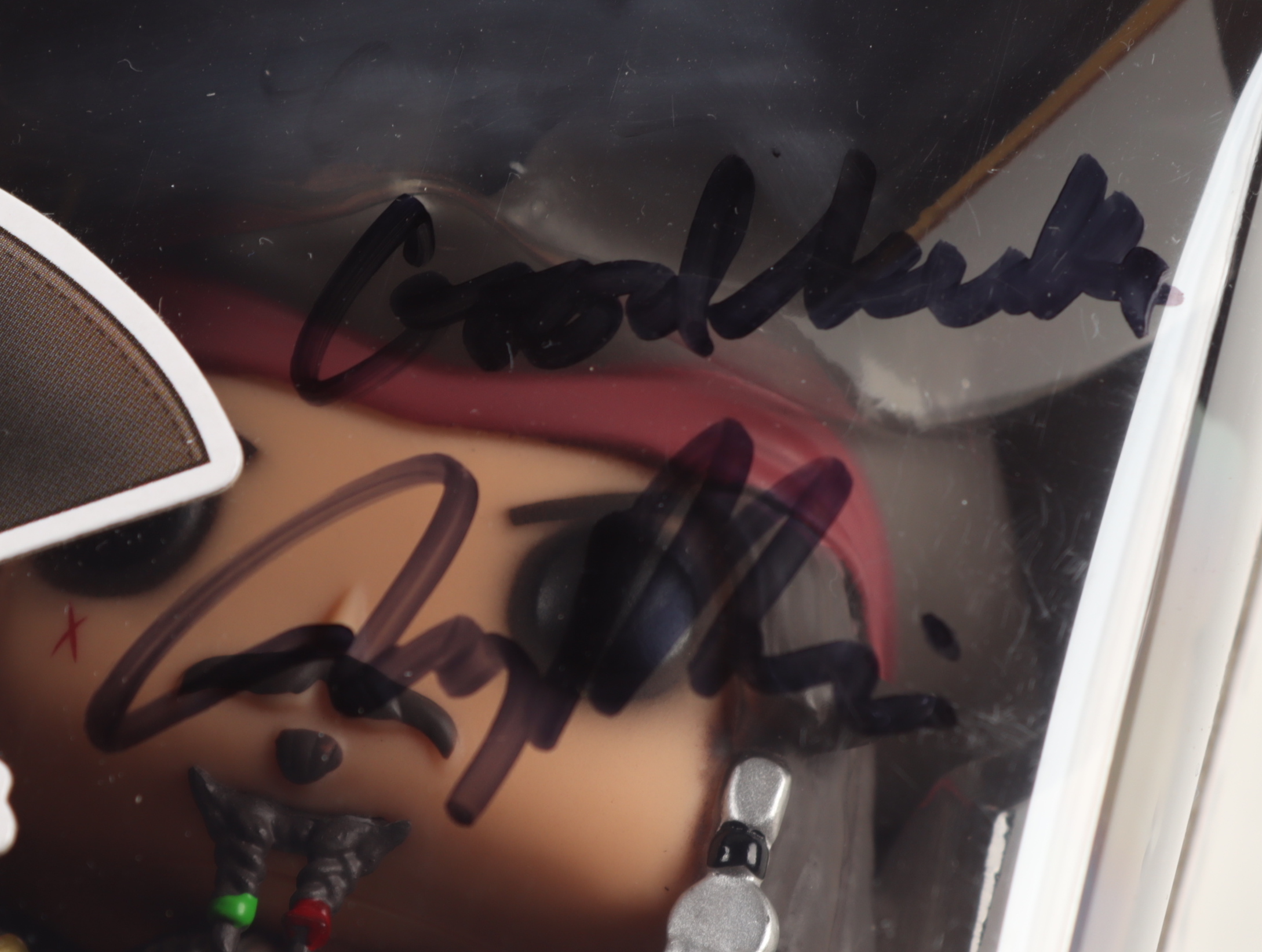 Figure measures approximately 4" tall. Hand-signed and inscribed on the packaging by Jerry Bruckheimer.