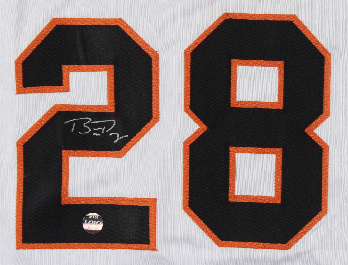 Custom on-field style jersey. Everything is sewn on, size XL. Hand-signed by Buster Posey.