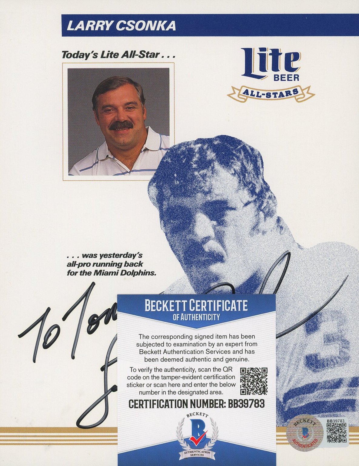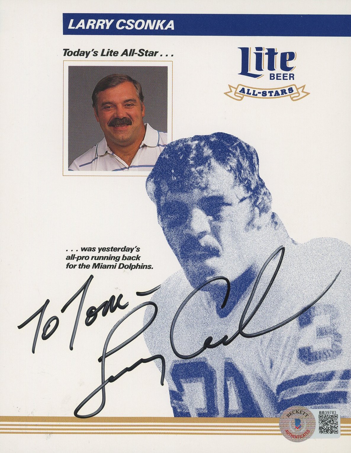 Larry Csonka Signed Lite Beer All-Stars 6x8 Photo (Beckett COA) (See Description)