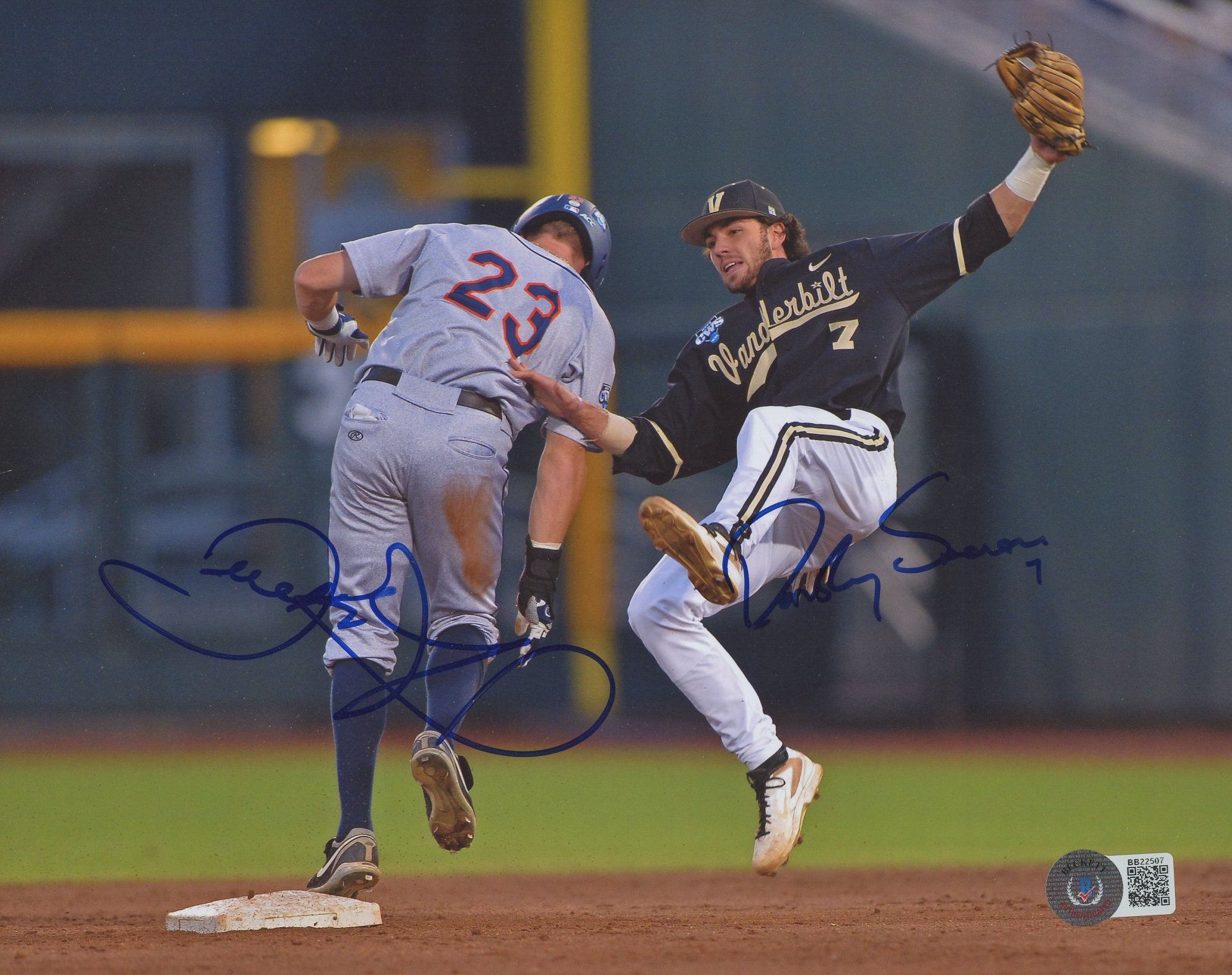 Photo measures 8" x 10" in size and is hand-signed by Dansby Swanson (Vanderbilt Commodores) and Derek Fisher (Virginia Cavaliers).