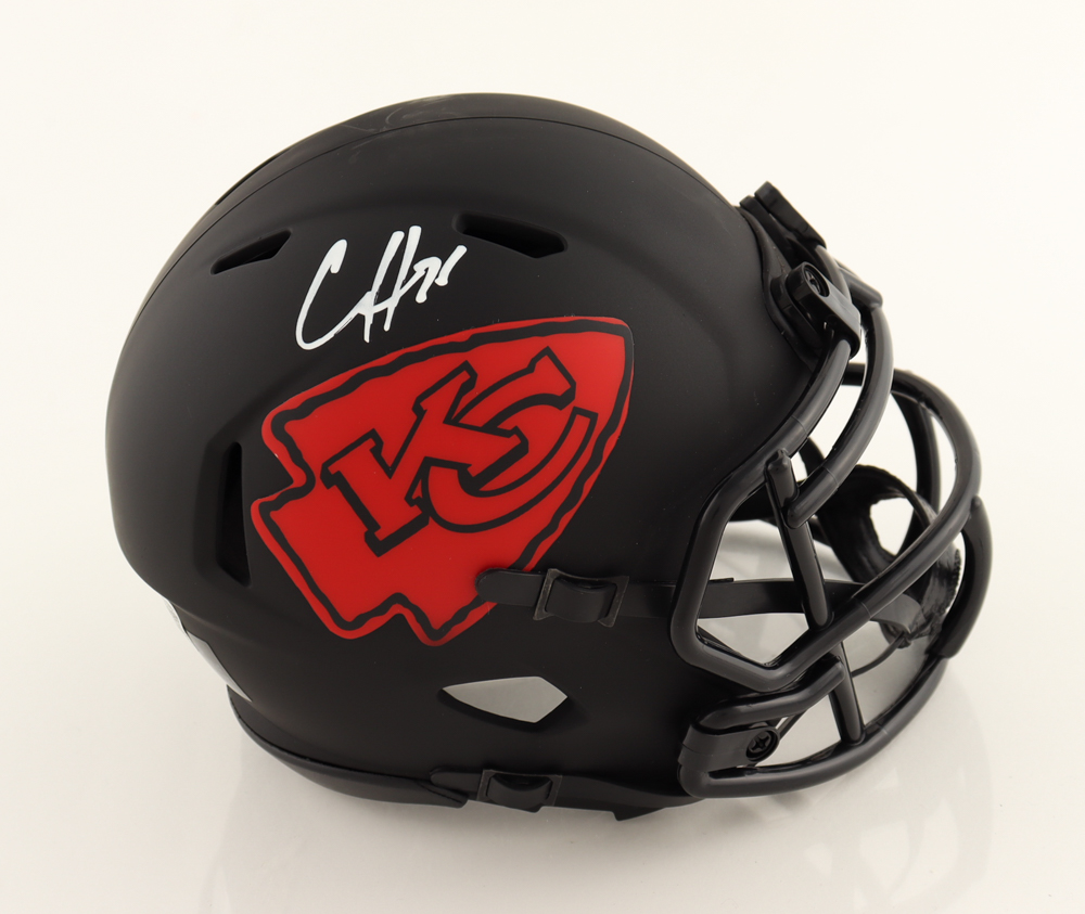 Riddell Kansas City Chiefs Eclipse Alternate speed mini helmet. Has been hand-signed by Clyde Edwards-Helaire.
