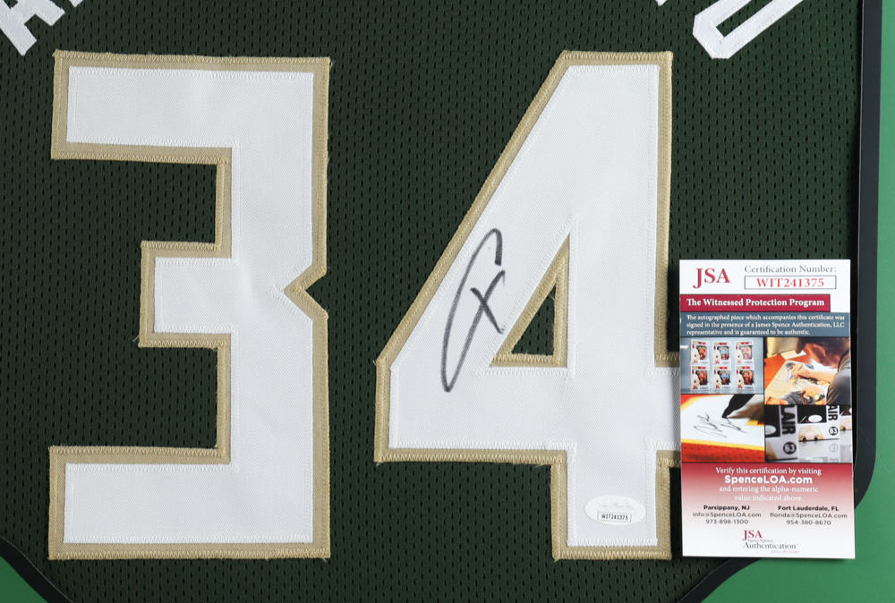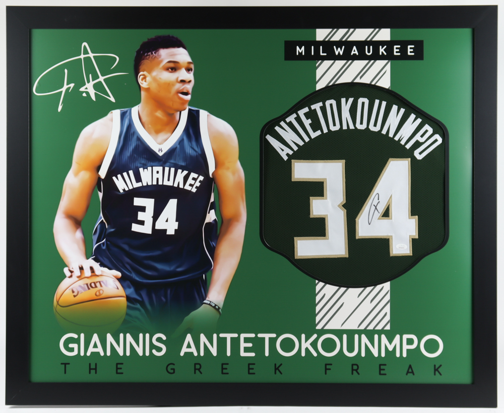 Giannis Antetokounmpo Signed 35x43 Custom Framed Jersey (JSA COA) (See Description)