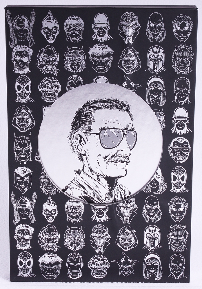 This deluxe book includes the original slipcase as shown. Beautiful presentation of this hardcover book which has been hand-signed on the inside title page by Stan Lee. The book has a retail price of $250 which is displayed on the back side of the slipcase.