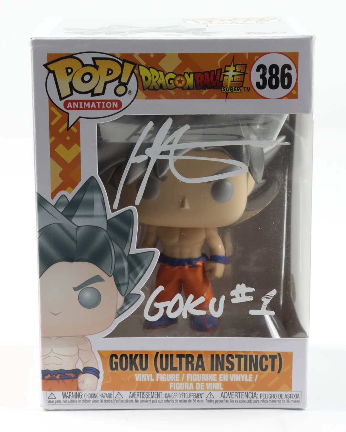 Ian James Corlett Signed "Dragon Ball Z" #386 Goku (Ultra Instinct) Funko Pop! Vinyl Figure Inscribed "Goku #1" (JSA COA)