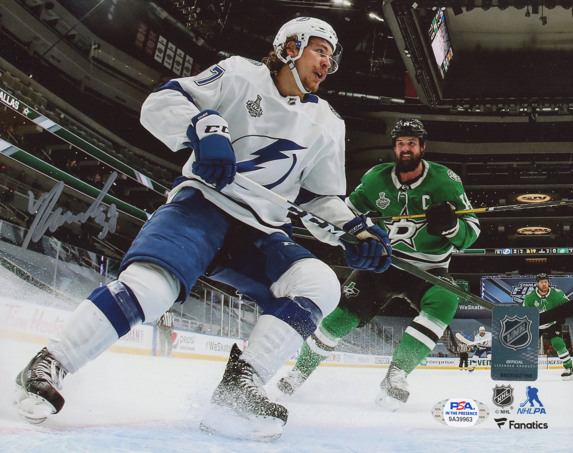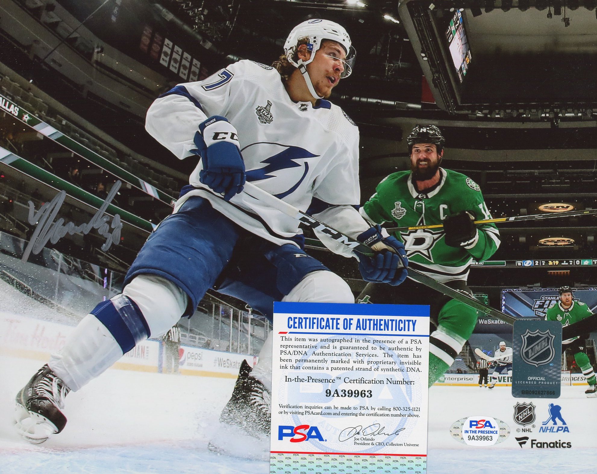 Photo measures 8" x 10" in size and has been hand-signed by Yanni Gourde (Tampa Bay Lightning).