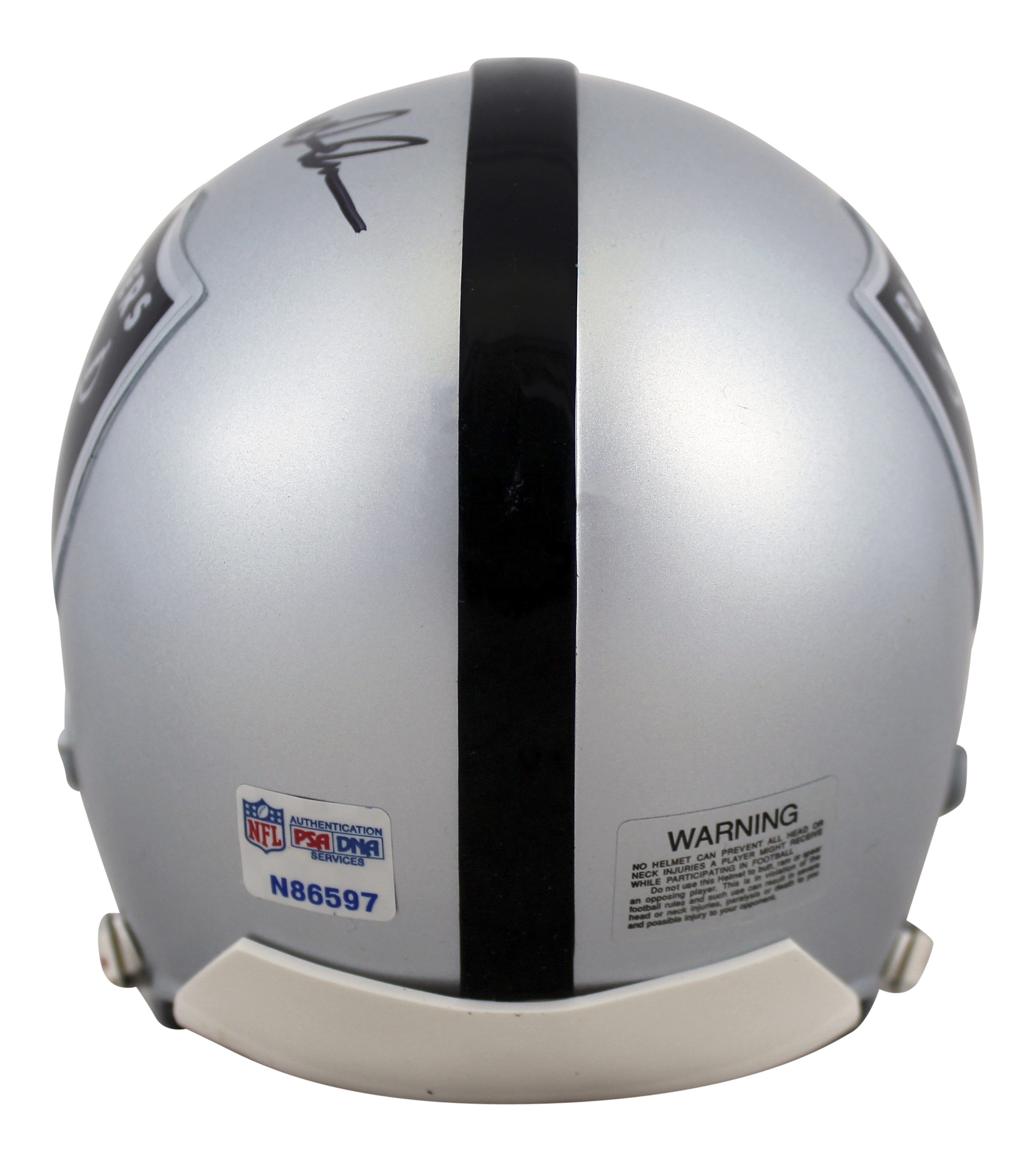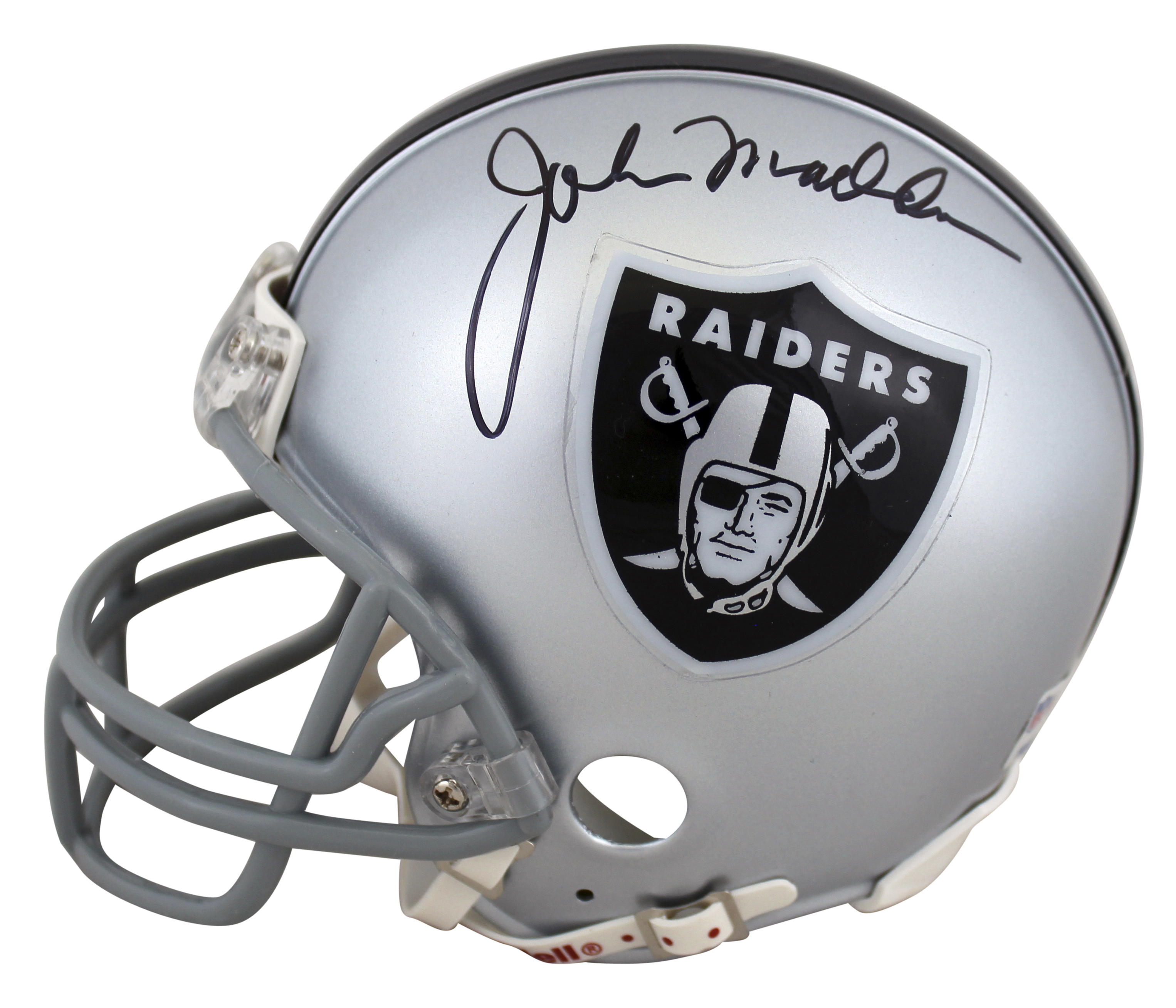 Riddell Oakland Raiders mini helmet has been hand-signed by John Madden (HOF).
