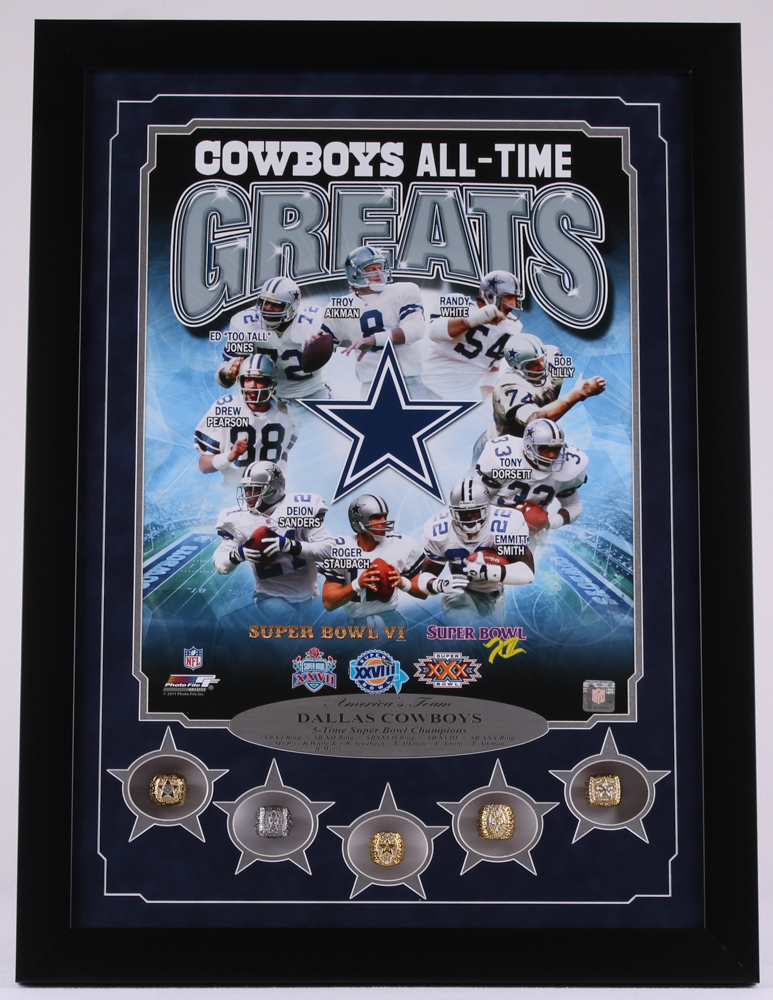 Dallas Cowboys 23x31 Custom Framed "Cowboys All-Time Greats" Ring Display