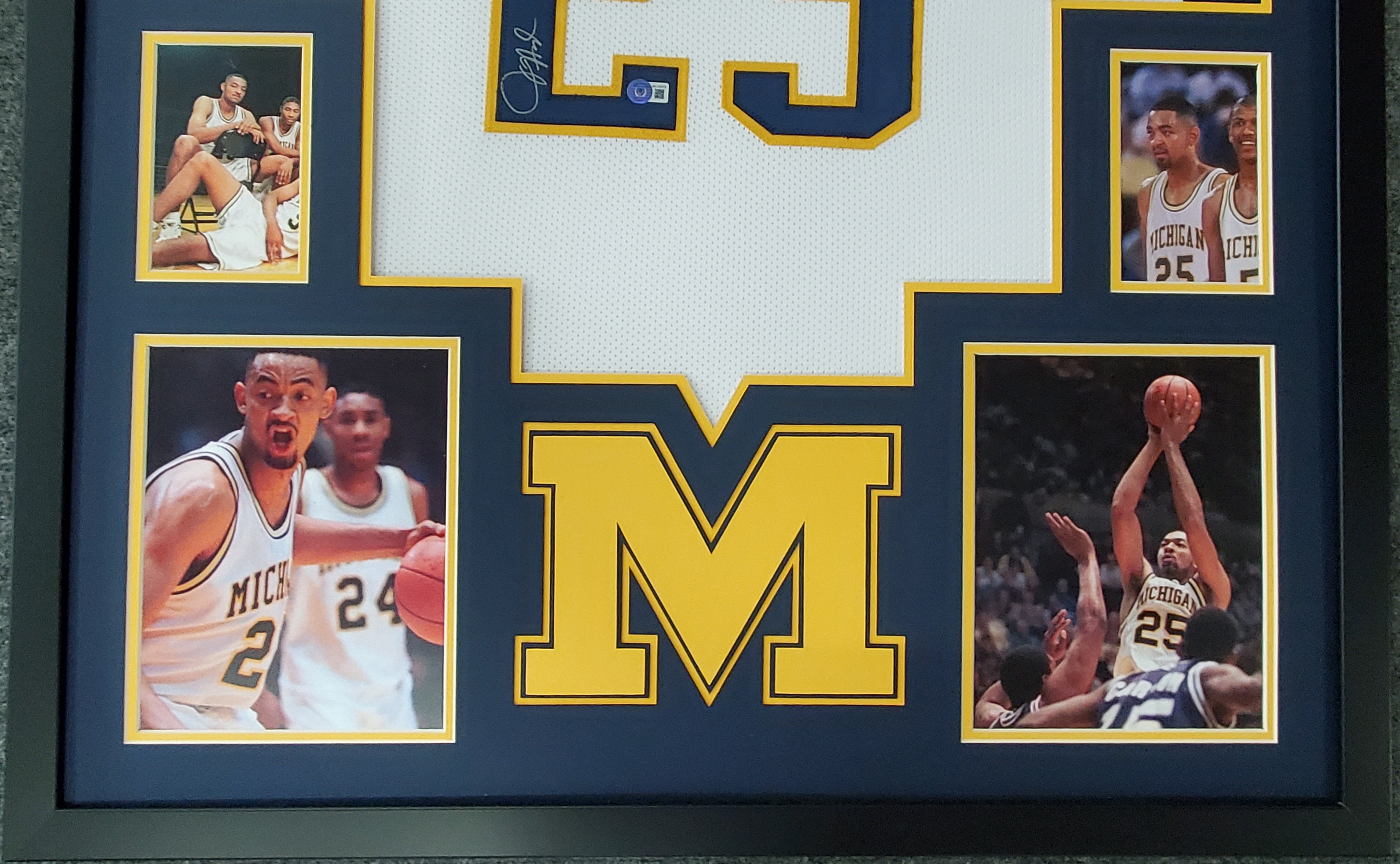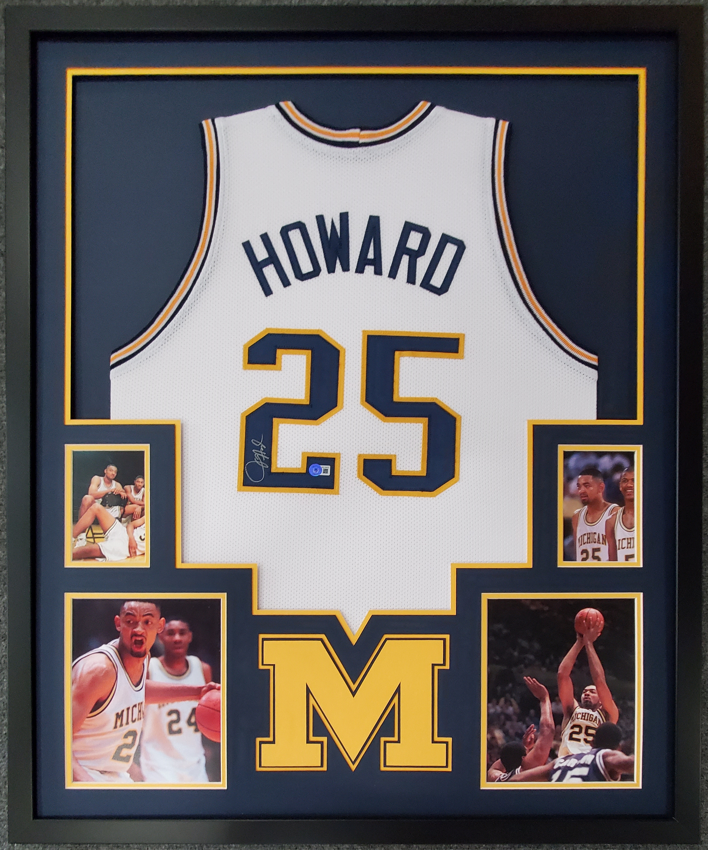 Custom framed display measures 34" x 42" in size and features a jersey that has been hand-signed by Juwan Howard (Michigan Wolverines).