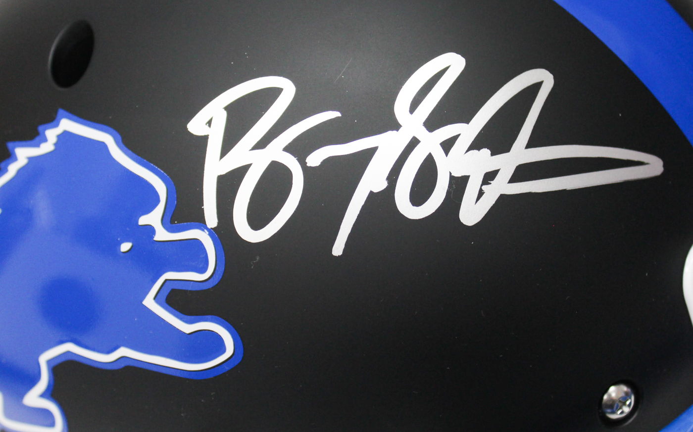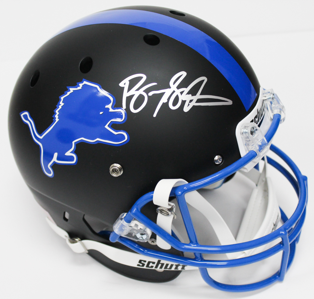 Schutt full size replica helmet. Hand-signed in silver paint pen by Barry Sanders (HOF). The helmet is a Pristine Auction exclusive item.