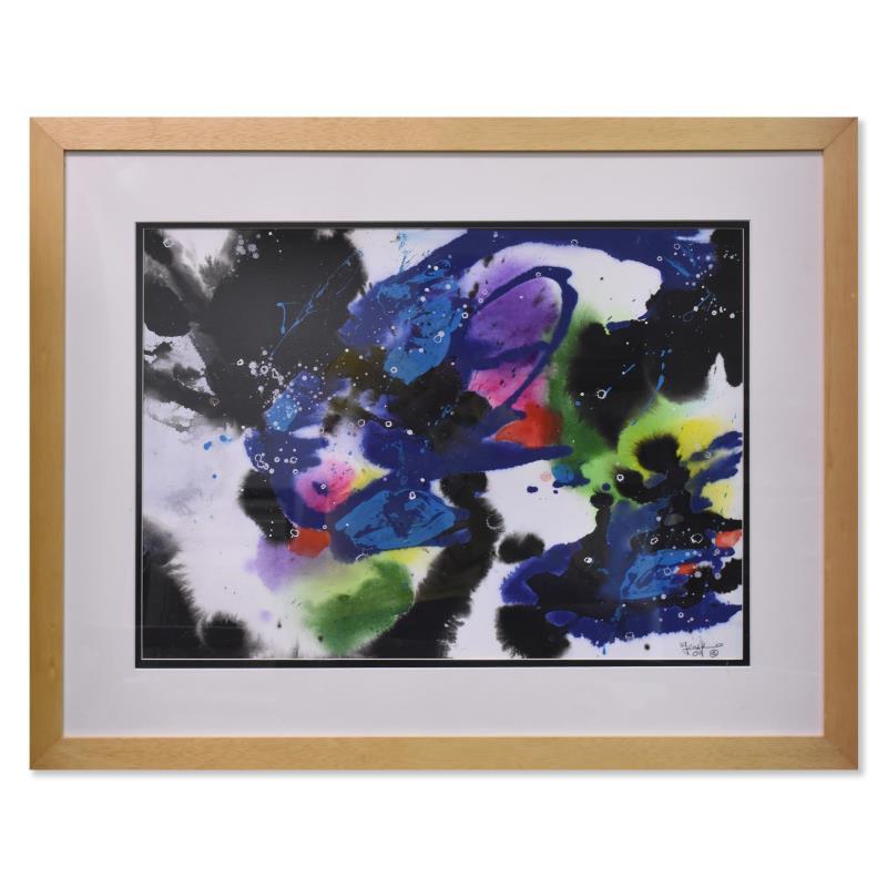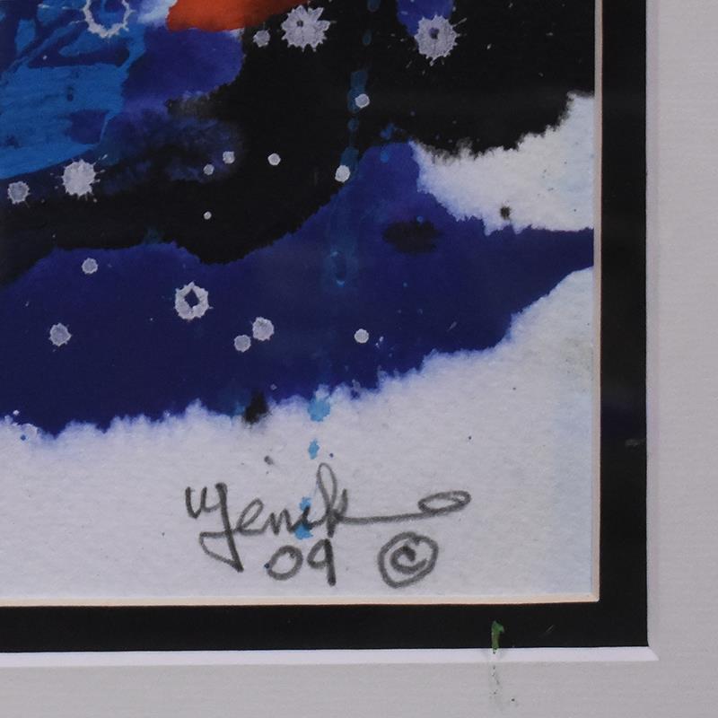 This is an original acrylic painting on paper by Jenik Cook, hand signed by the artist. This piece comes framed. Includes Letter of Authenticity. This piece comes from the artist's personal collection. Measures approx. 31.5" x 25.5" (frame), 23" x 17" (image). ** Please note: There is noticeable wear on the corners and edges of the frame. **