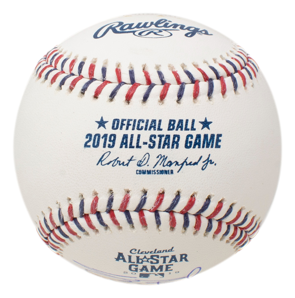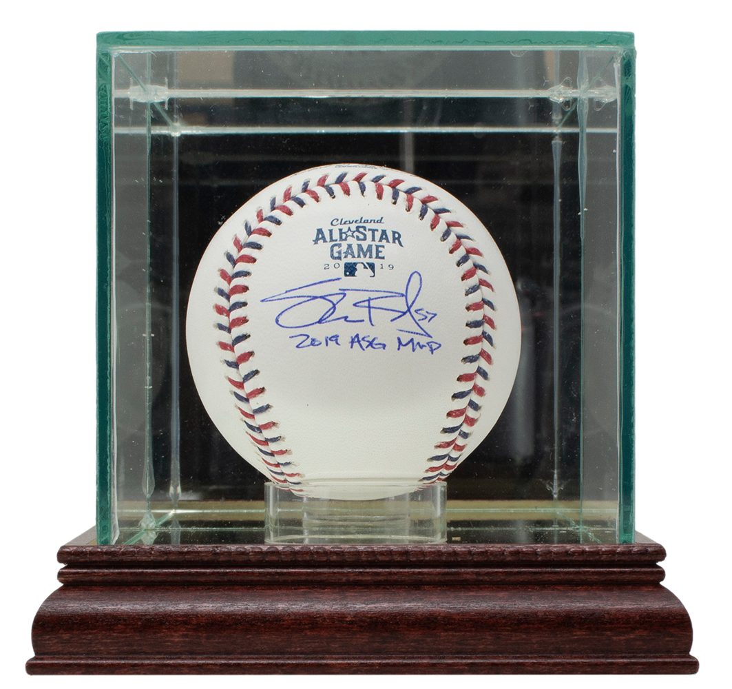 Rawlings Official 2019 All-Star Game logo baseball. Hand-signed and inscribed by Shane Bieber (Cleveland Indians). Includes display case as shown.