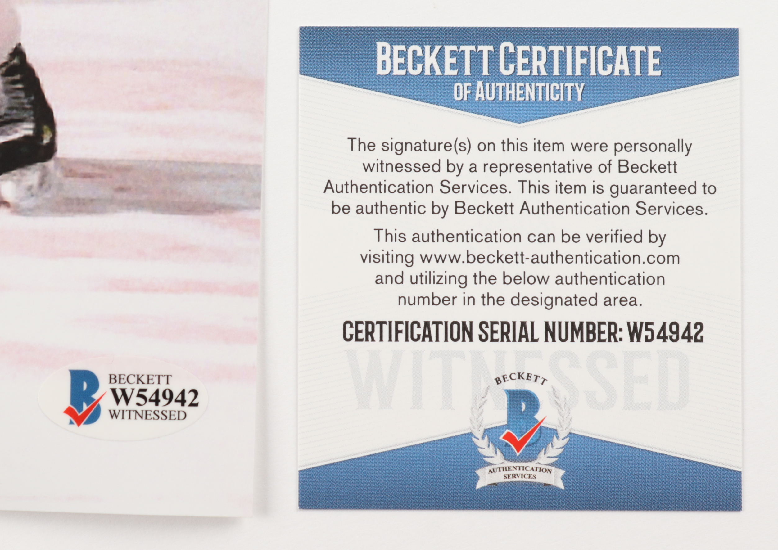 The lot / autograph(s) includes an official Beckett Authentication Services serially-numbered hologram and matching COA for authenticity purposes. The signing of this item was witnessed by Beckett.