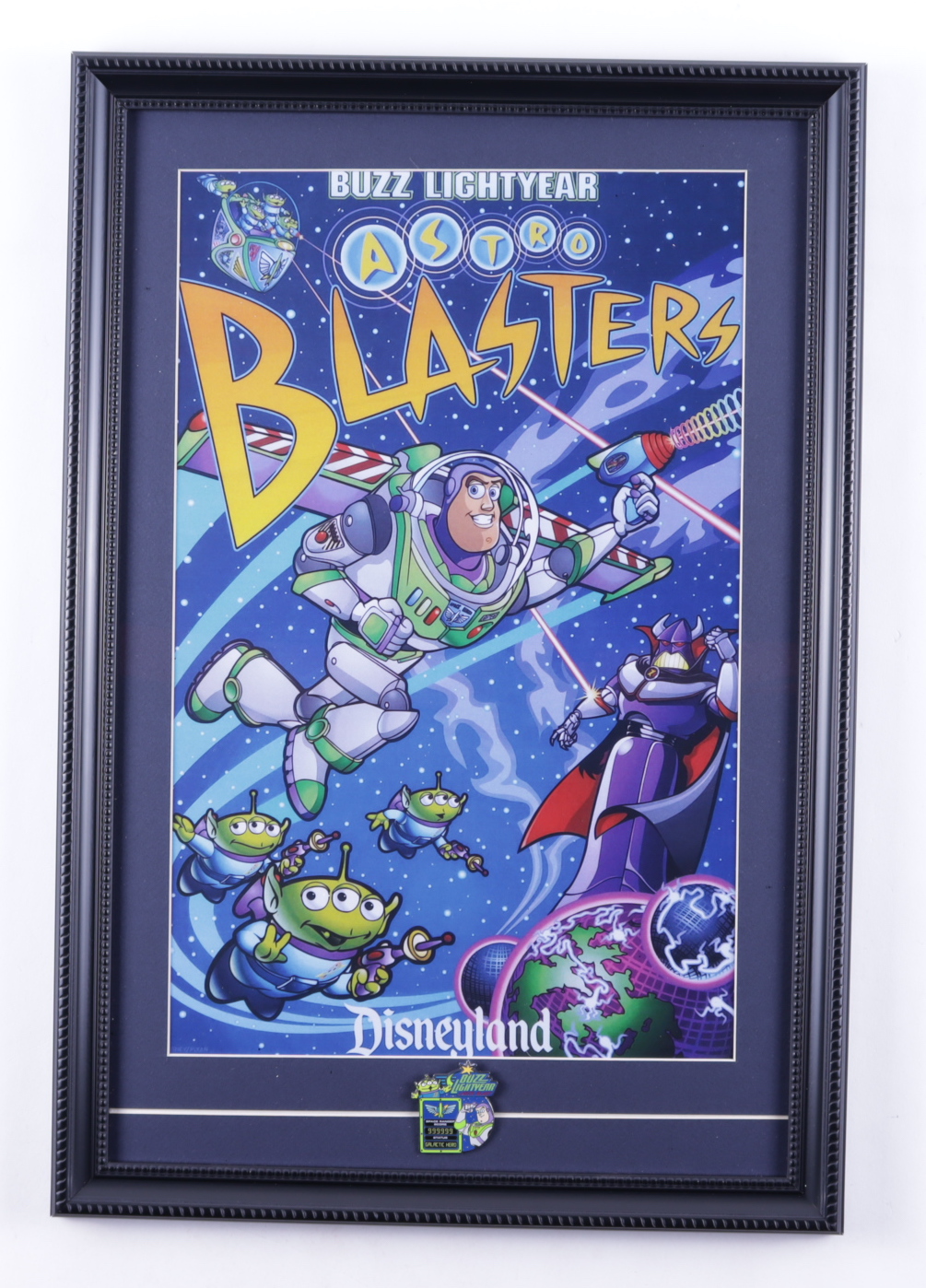 Disneyland's "Buzz Lightyear Astro Blasters" 15x22 Print Display with Buzz Lightyear Astro Blasters Official Ride Pin