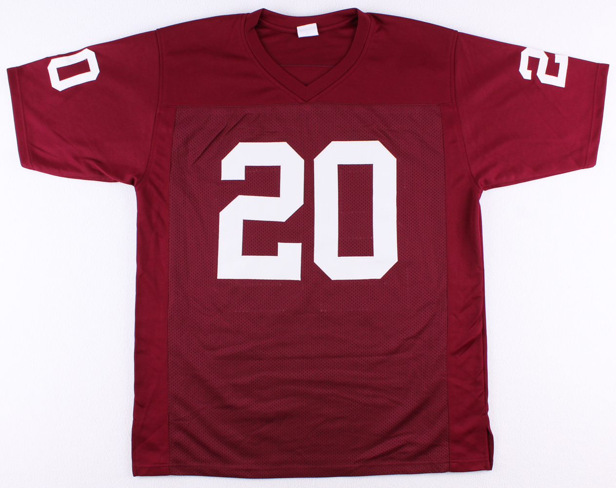 Custom on-field style jersey. Everything is sewn on, size XL. Hand-signed in black felt tip pen by Billy Sims (Lions).