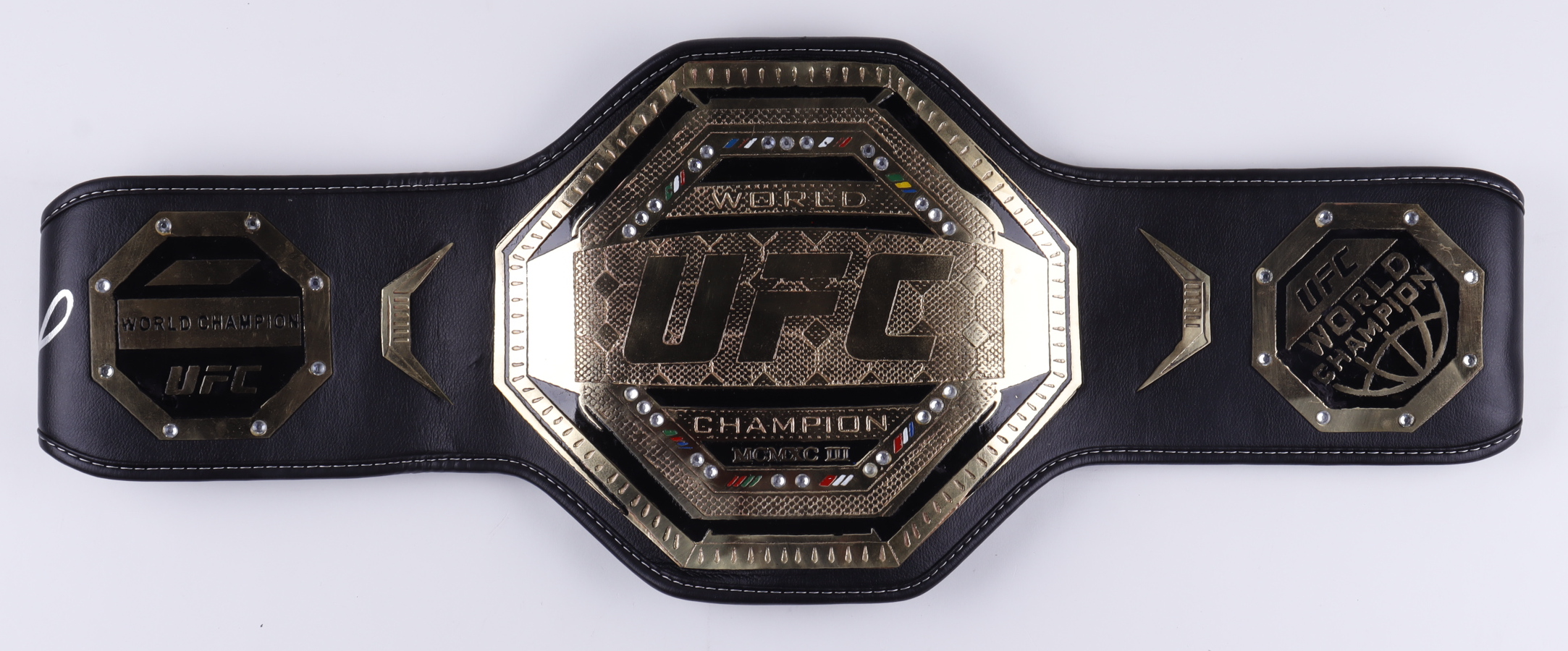 UFC World Championship Replica Belt has been hand-signed by Francis Ngannou. Please note, belt shows signs of wear and has stray marks. See photos for more details regarding the condition of the belt.