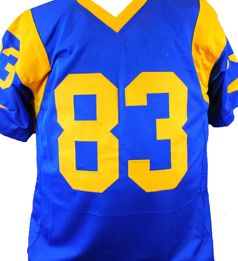 Custom on-field style jersey. Everything is sewn on, size XL. Has been hand-signed and inscribed by Flipper Anderson.