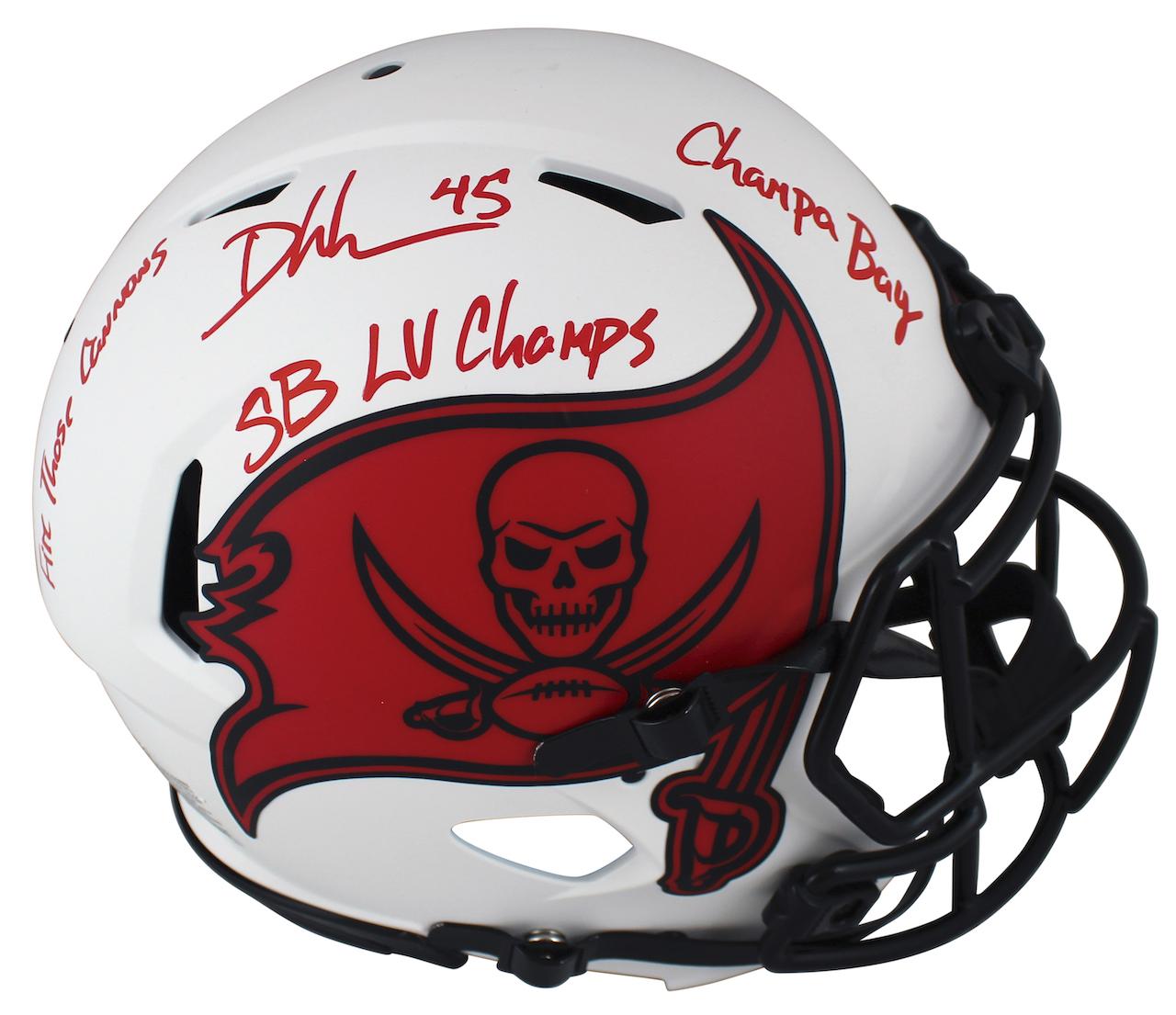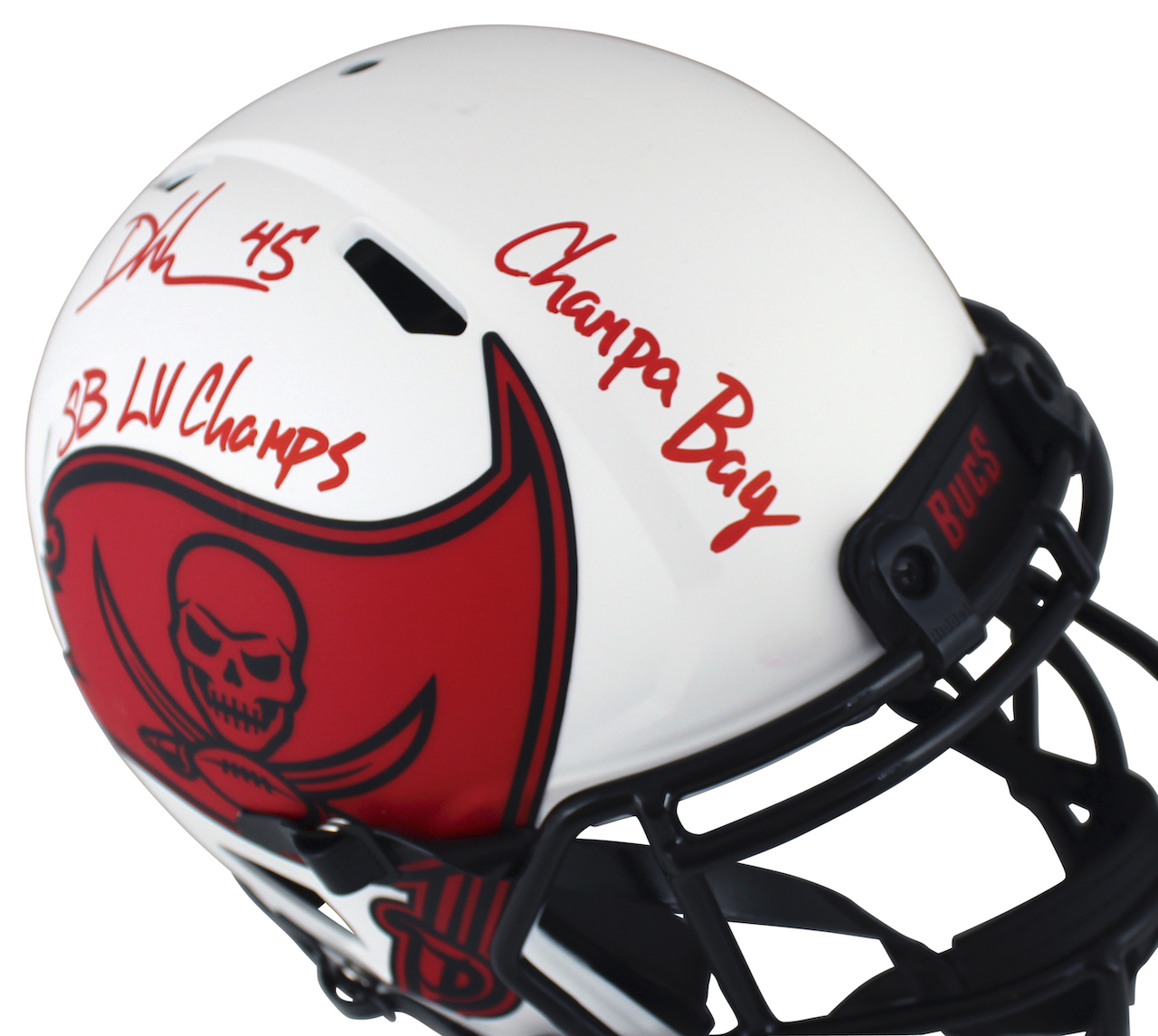Riddell Tampa Bay Buccaneers full-size authentic on-field Lunar Eclipse Alternate Speed helmet. Has been hand-signed by Devin White.