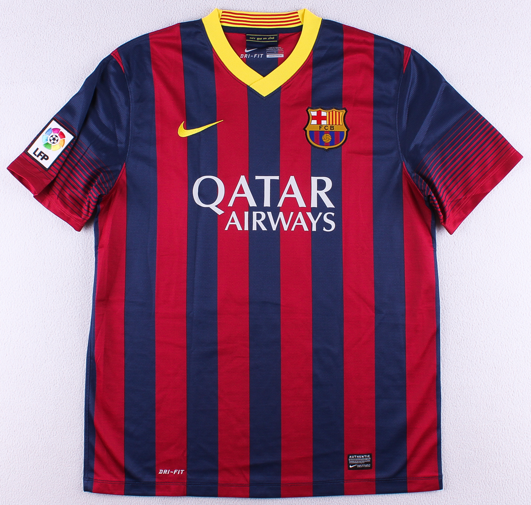 Nike on-field style jersey. Everything is sewn on, size L. Hand-signed in black felt tip pen by Xavi Hernandez (Barcelona).