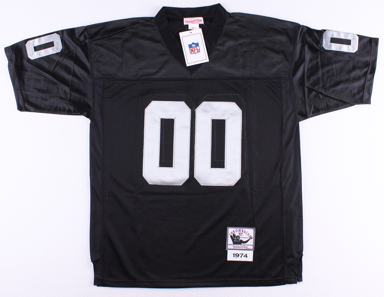 Mitchell & Ness on-field style jersey. Everything sewn on, size 50. Hand-signed and inscribed in black felt tip pen by JIm Otto (Raiders HOF)