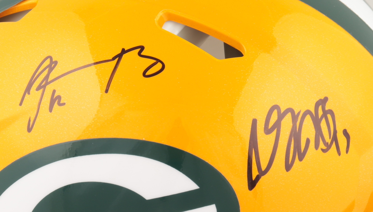 Davante Adams & Aaron Rodgers Signed Packers Full-Size Authentic On-Field Speed Helmet (JSA COA) (See Description)