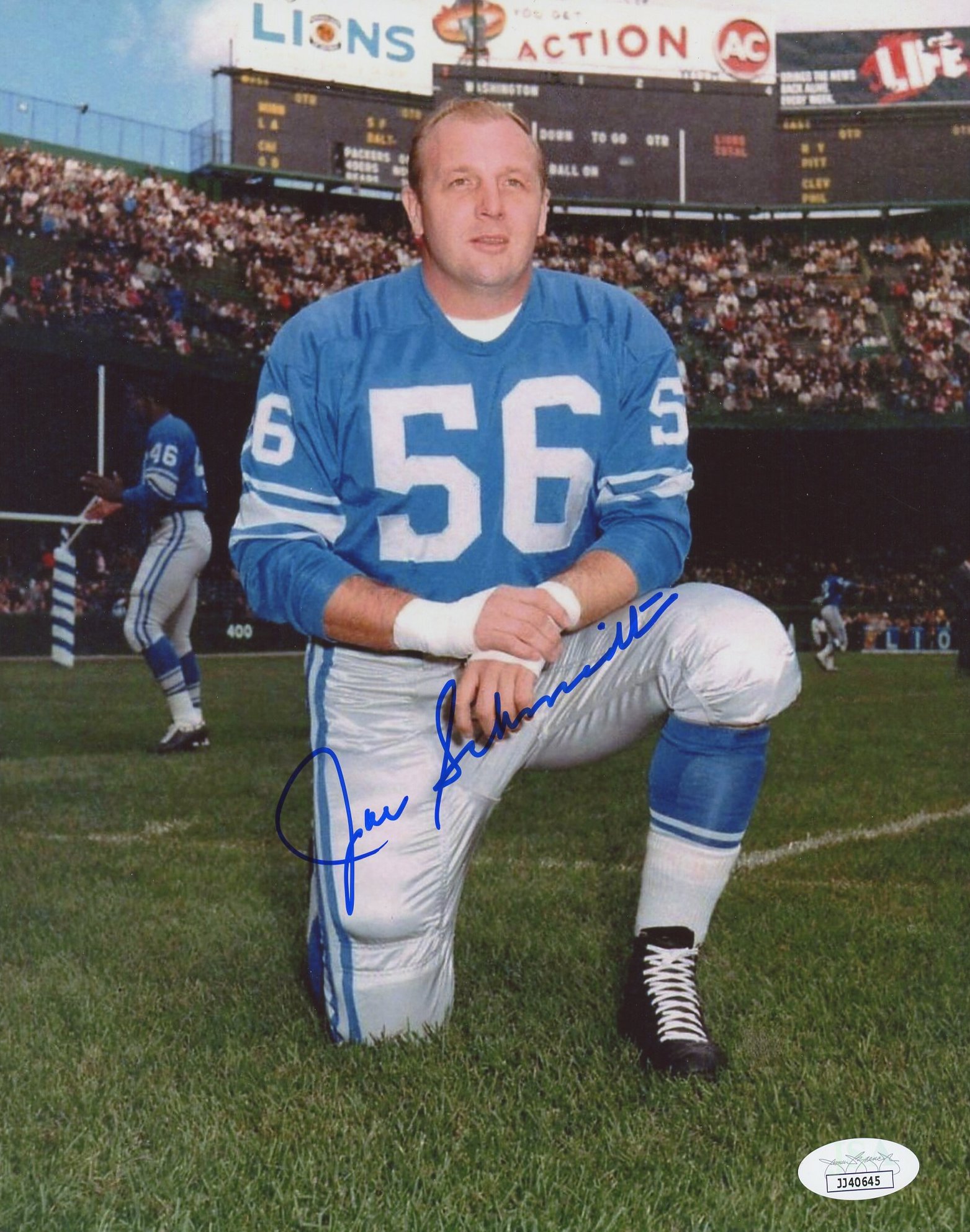 Photo measures 8" x 10" in size and has been hand-signed by Joe Schmidt (Detroit Lions, HOF).