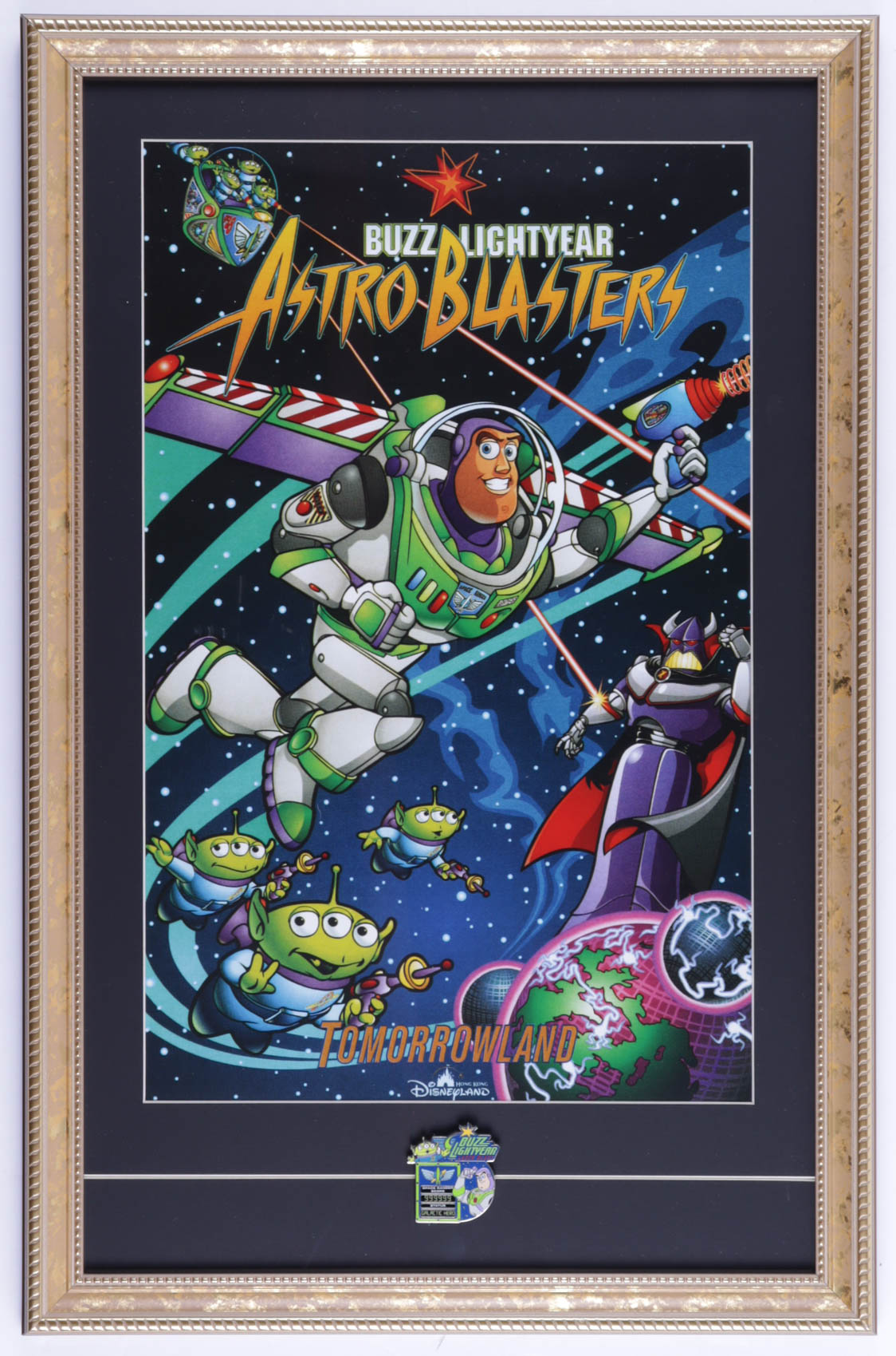 Disneyland's "Buzz Lightyear Astro Blasters" 15x22 Print Display with Buzz Lightyear Astro Blasters Official Ride Pin (See Description)