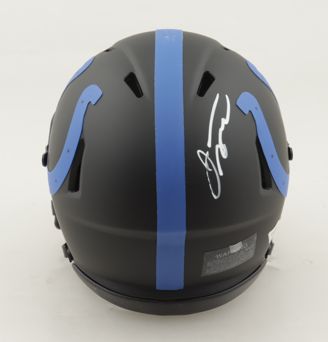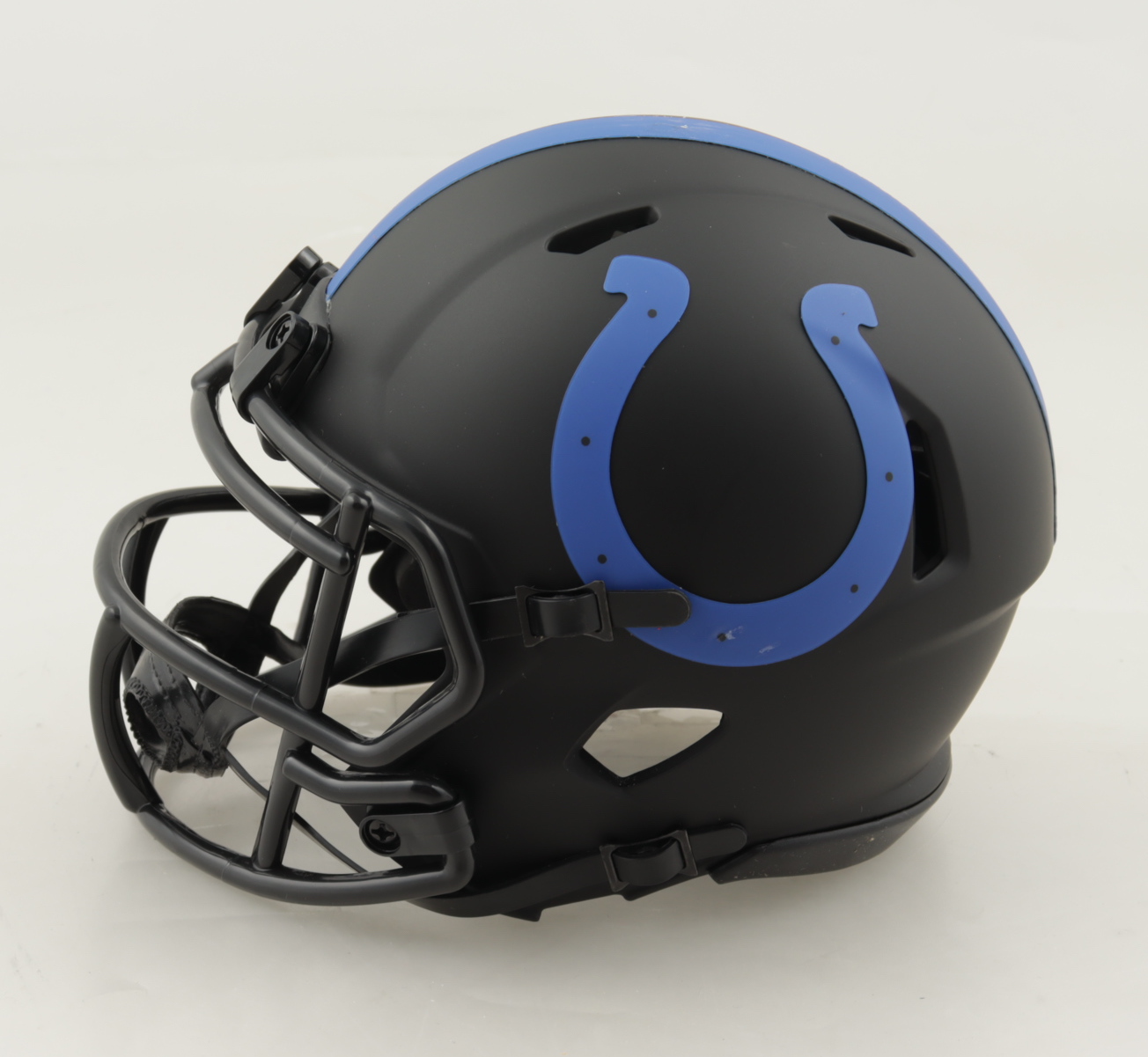 Riddell Indianapolis Colts eclipse alternate speed mini helmet. Has been hand-signed by Jonathan Taylor.