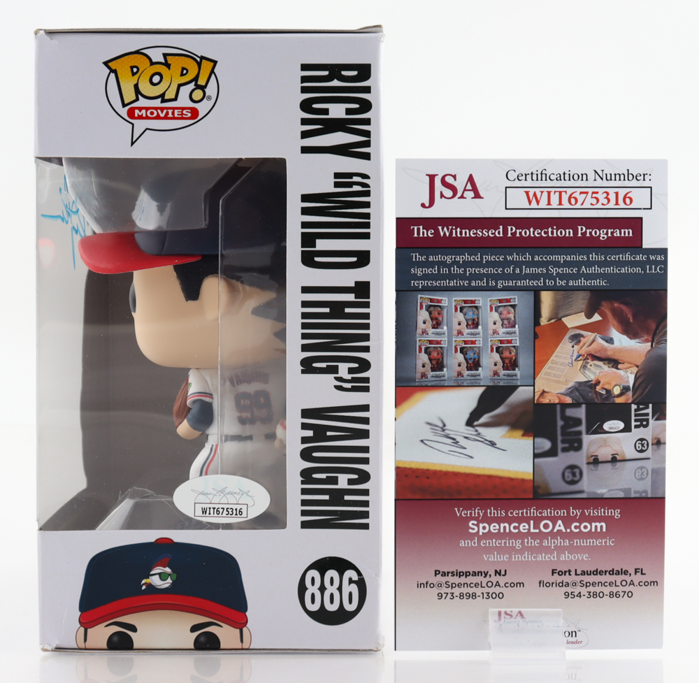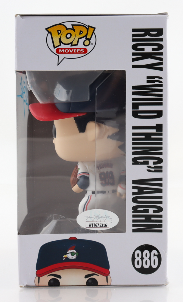 Funko Pop! vinyl figure measures approximately 4" tall. Hand-signed on the packaging by Charlie Sheen (Ricky "Wild Thing" Vaughn). Please note, the packaging shows signs of handling and the autograph is imperfect.