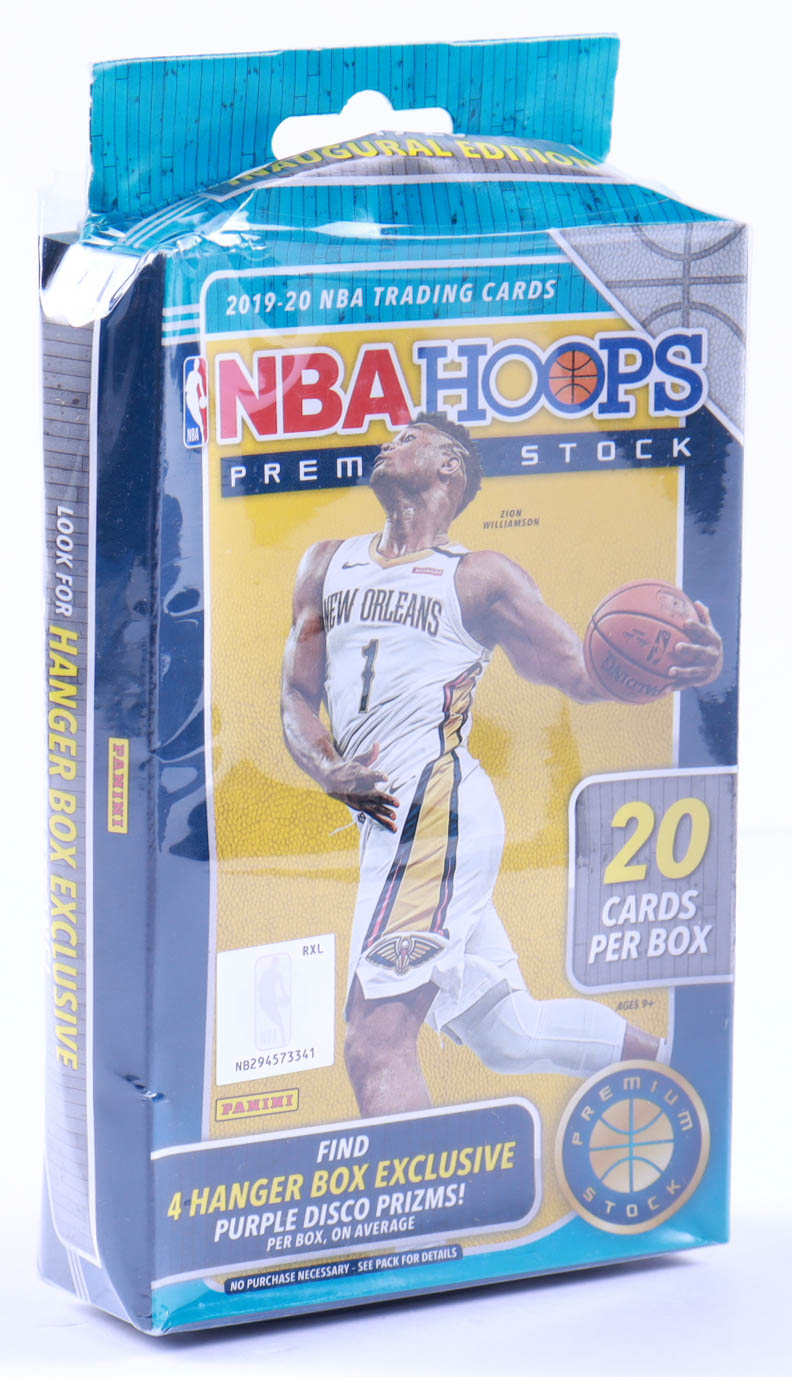 (20) Cards Per Pack. Factory Sealed. Please note, the box shows signs of denting from wear. (4) Purple Disco Prizms Per Box! Look For Zion Williamson and Ja Morant Rookies and Autographs Brand new to 2019-20 Hoops Premium Stock features updated photos of players on their new teams along with updated game action photography of rookies all on opti-chrome technology! Don't miss out on the final retail release for 2019-20! Find autographs of the top NBA rookies, veterans, and legends in Rookie Ink, Hoops Ink, and Hot Signatures Rookies! Hanger boxes are the only place to find Purple Disco Prizms! Also look for the retail exclusive one-of-one black parallel for retail insert sets including Lights Camera Action, Frequent Flyers, Class of 2019, Get Out the Way, and Arriving Now! Blaster boxes are the only place to find different Mojo Prizm parallels! Look for the incredible Black Mojo 1 of 1 Prizm randomly inserted in blaster boxes! Also find We Got Next, Back Stage Pass, Zero Gravity, Courtside, and NBA City inserts and parallels randomly inserted in blaster boxes! Multi-Packs are the only place to find Base Blue Prizms, Base Blue Wave Prizms, and all of the Laser color parallels! Also, look for We Got Next, Back Stage Pass, Zero Gravity, Courtside, and NBA City inserts and parallels randomly inserted in Multi-Packs! Featuring Rookie Cards of Zion Williamson, Ja Morant, R.J. Barrett, Cam Reddish, Rui Hachimura, Tyler Herro, D'Andre Hunter, P.J. Washington, Darius Garland, Jarrett Culver, and Coby White.