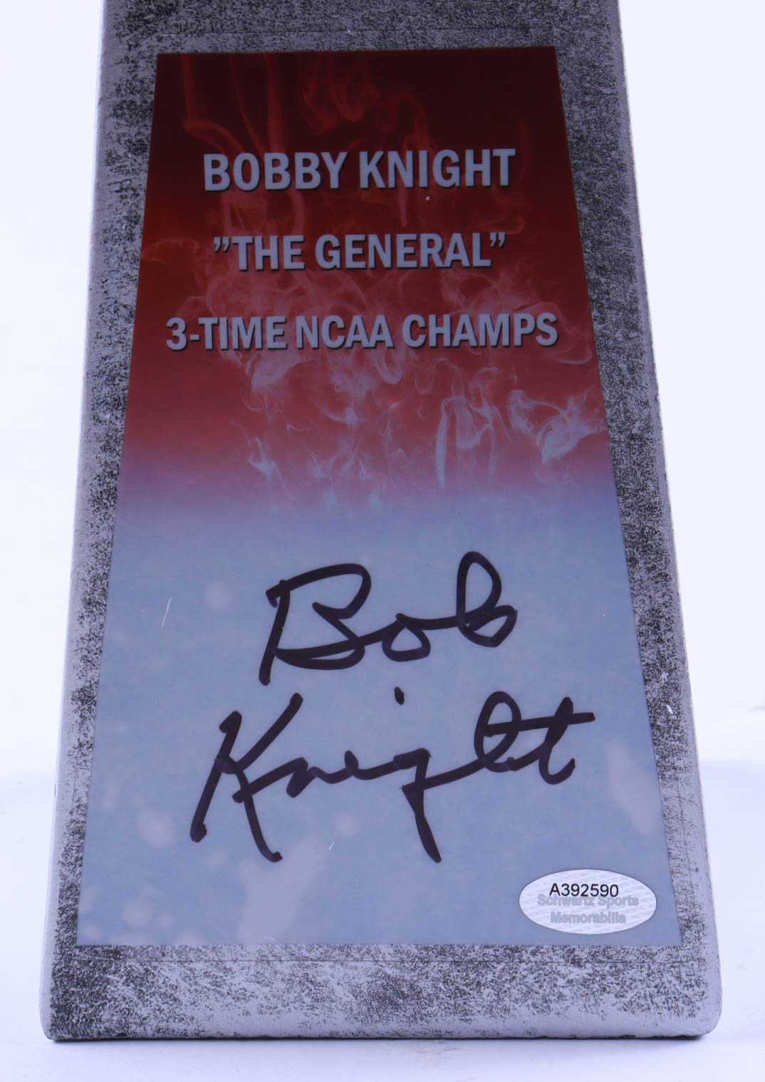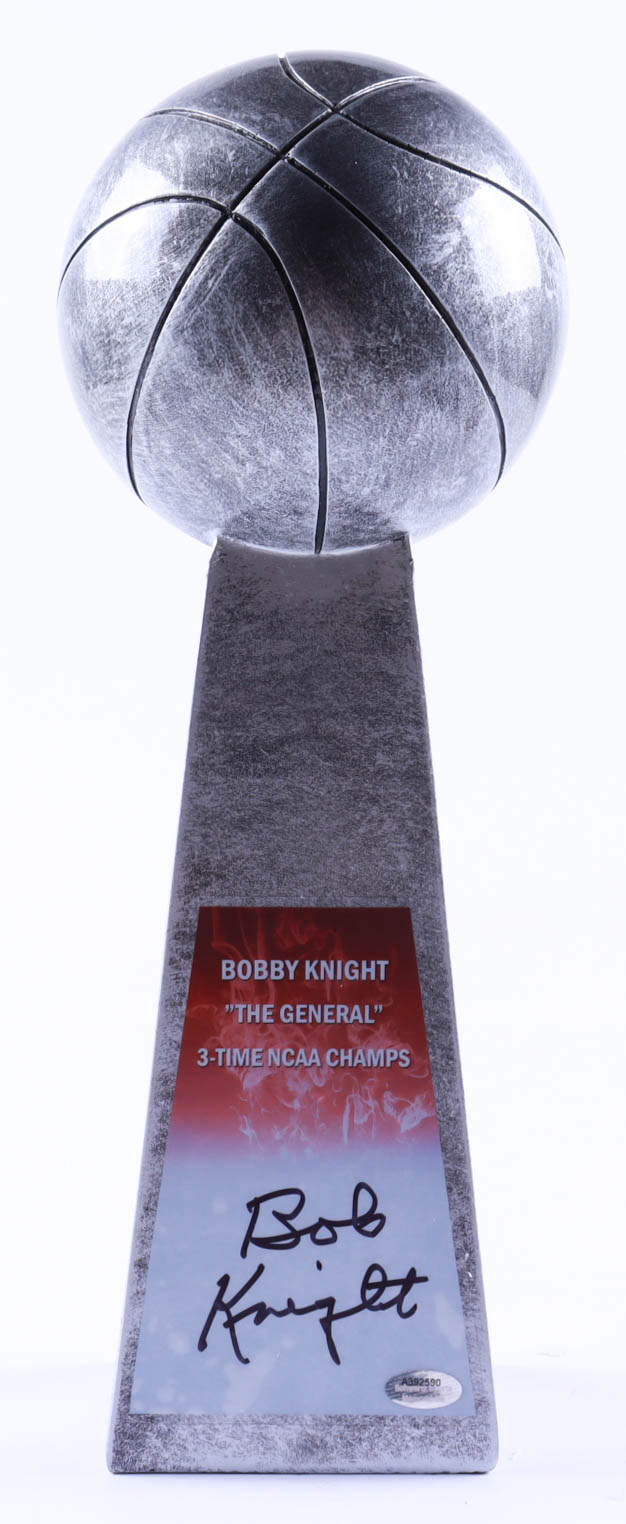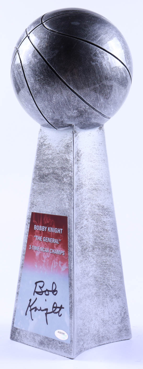 Replica championship trophy measures approximately 14" in height and has been hand-signed by Bob Knight (Indiana Hoosiers, HOF).