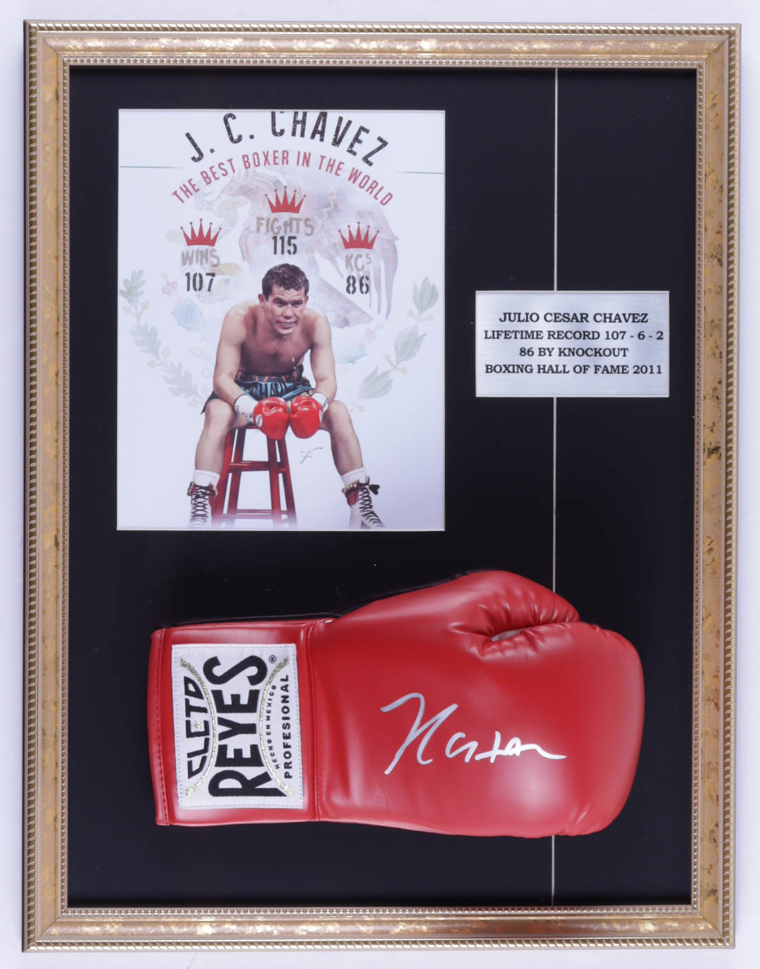 Julio Cesar Chavez Signed 17x22 Custom Framed Official Cleto Reyes Boxing Glove Display (PSA COA) (See Description)