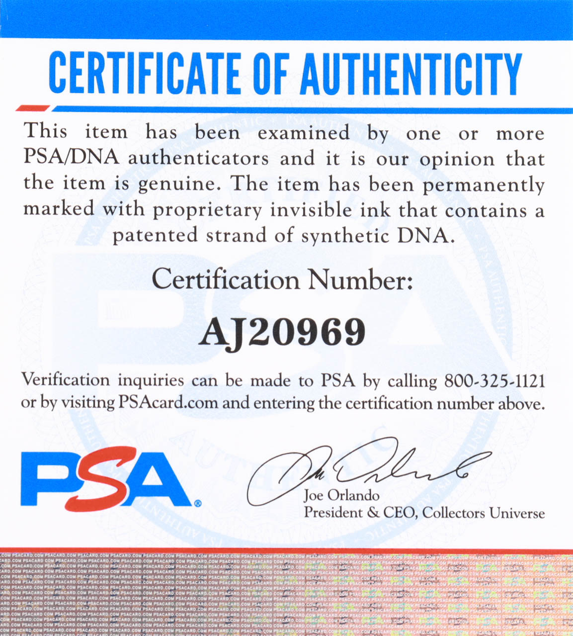 Authentication: PSA COA