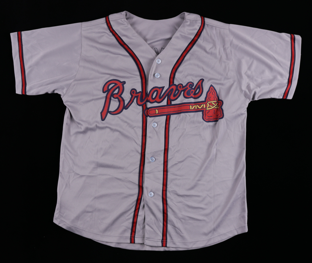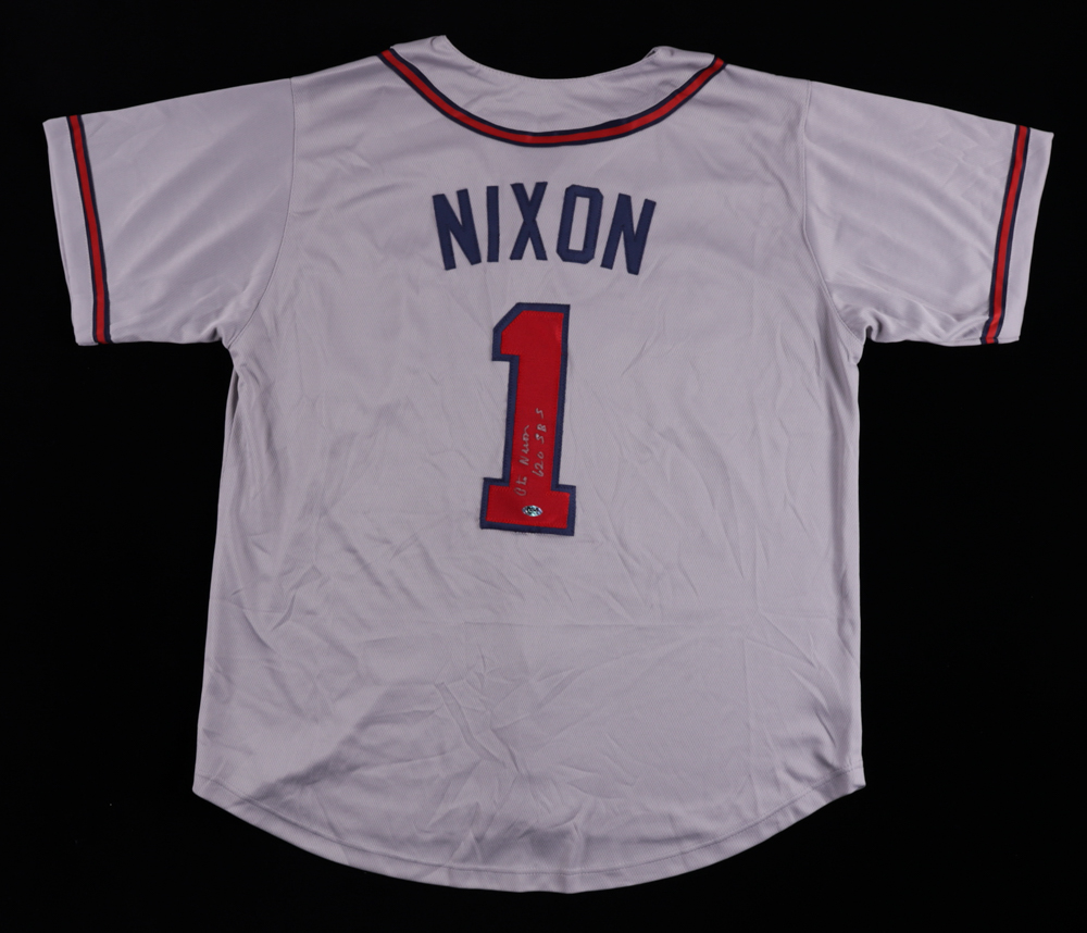 Custom on-field style jersey. Everything is sewn on, size XL. Hand-signed and inscribed by Otis Nixon.
