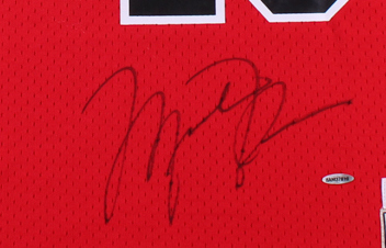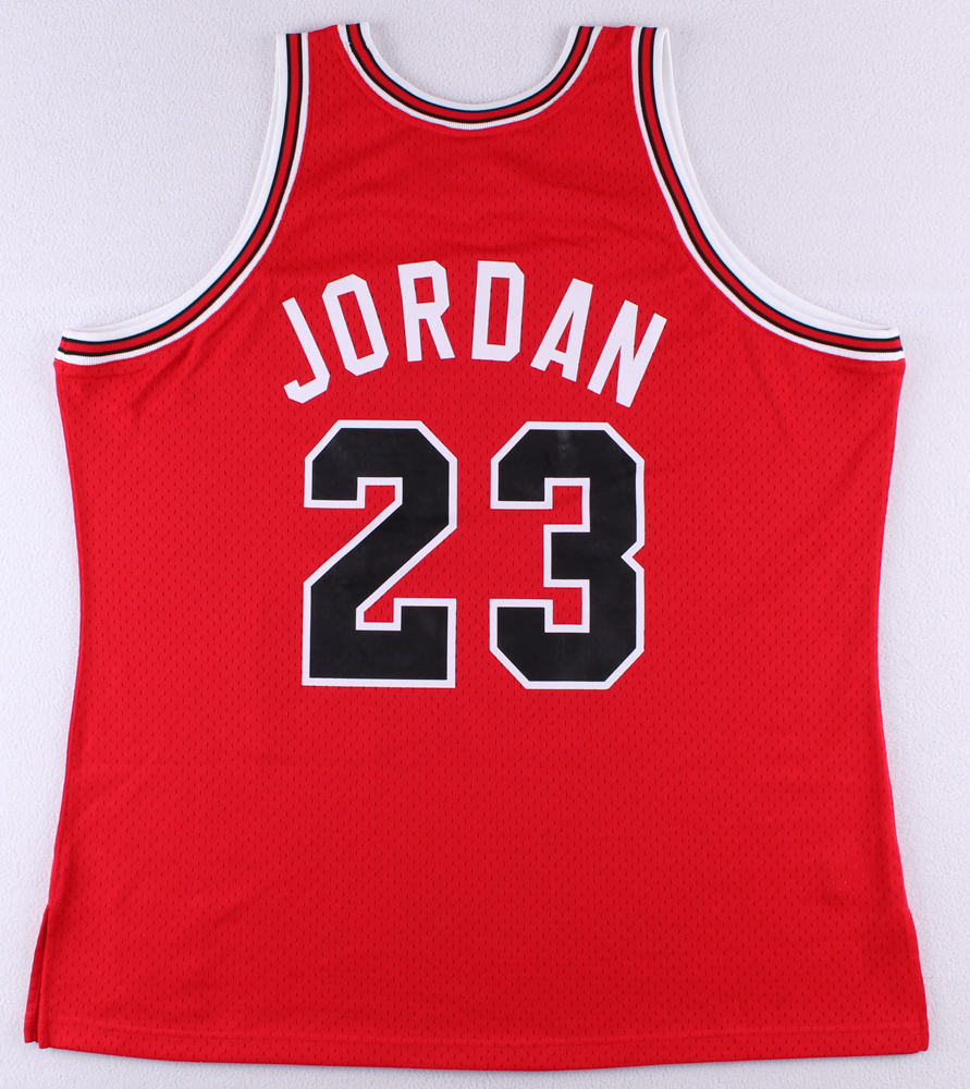 Mitchell & Ness on-court authentic jersey. Everything printed on, size 52 (2XL). Hand-signed in black felt-tip pen by Michael Jordan (Bulls, HOF).