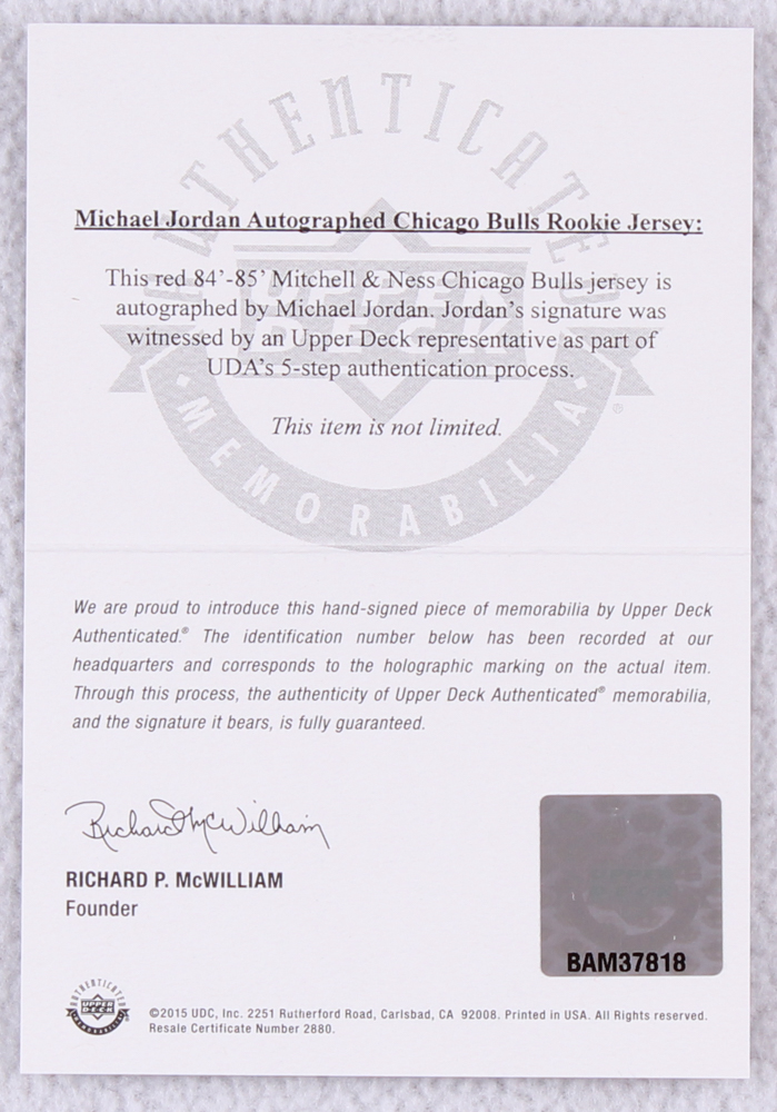 Michael Jordan Signed Mitchell & Ness Authentic 1984-85 Rookie Bulls Jersey (UDA COA)