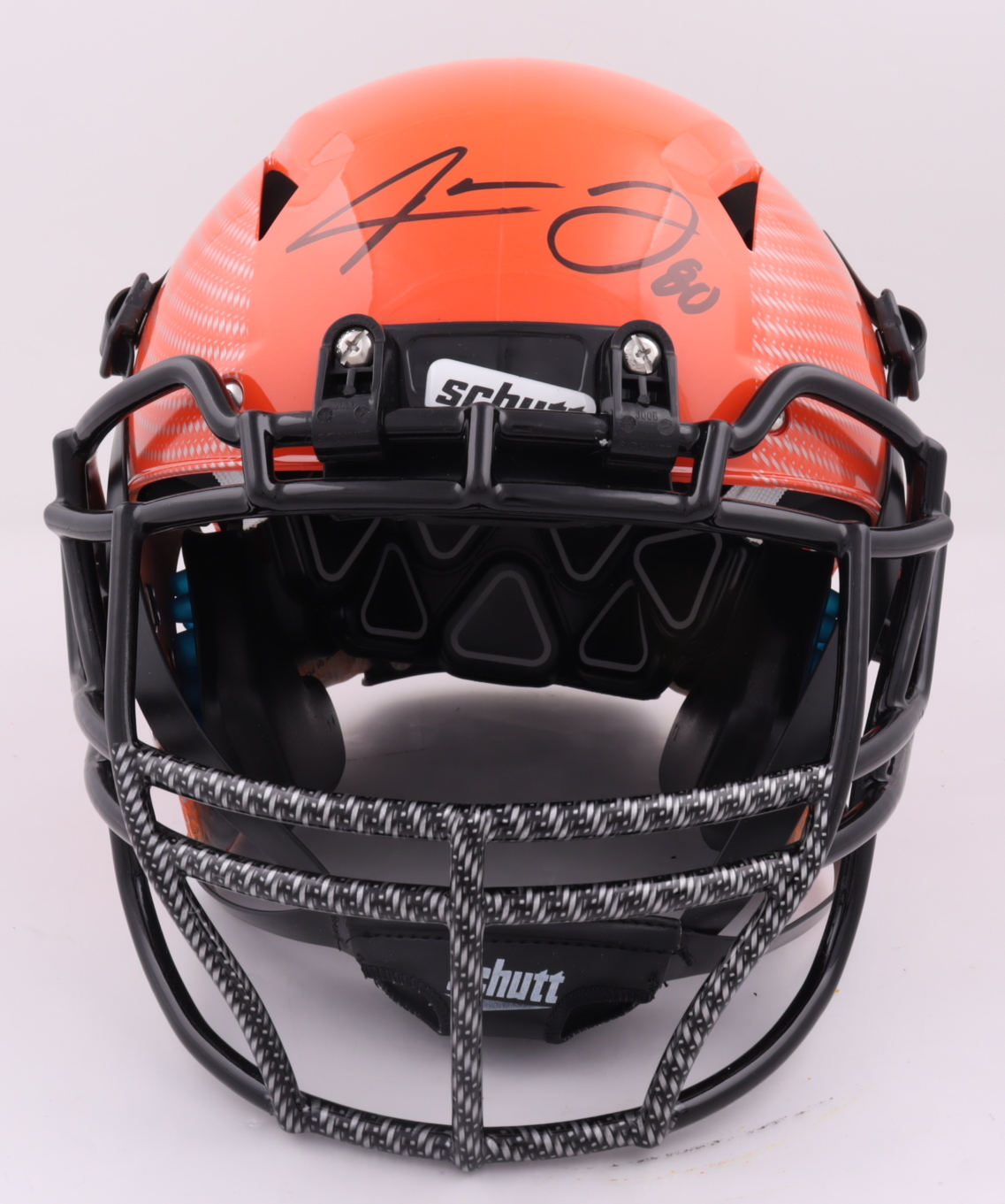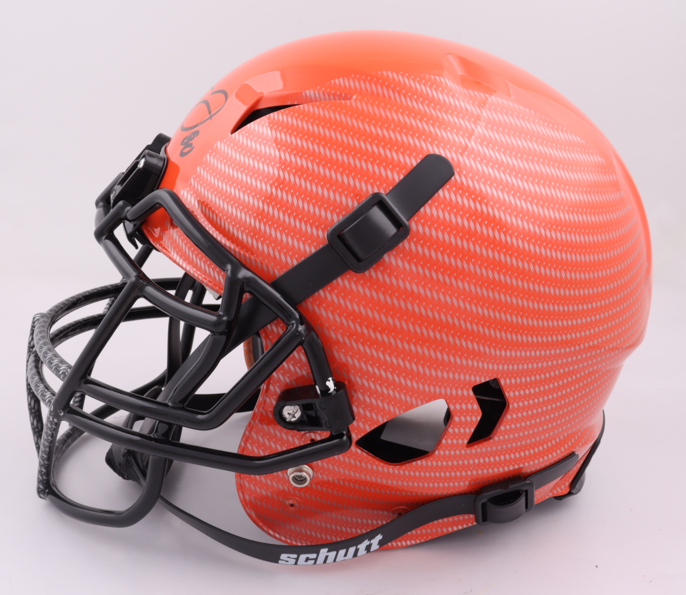 Schutt full-size authentic on-field hydro dipped Vengeance Helmet has been hand-signed by Jarvis Landry. Please note, the helmet shows some minor signs of wear. See photos for more details regarding the condition of the helmet.