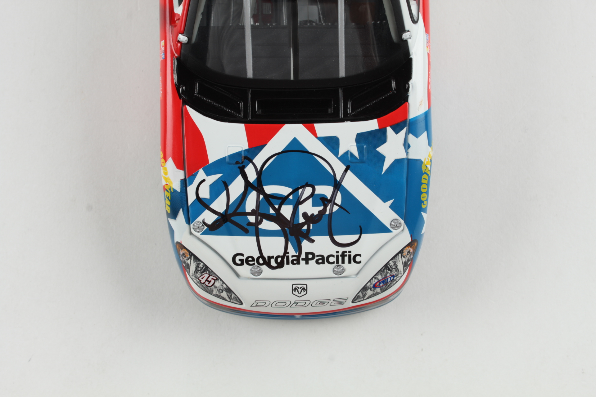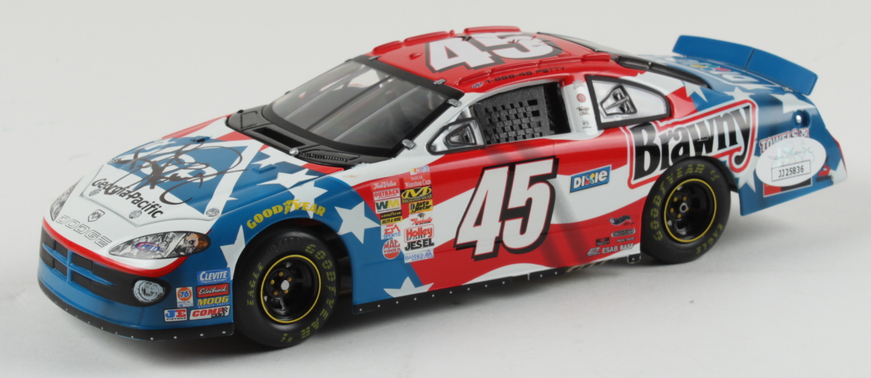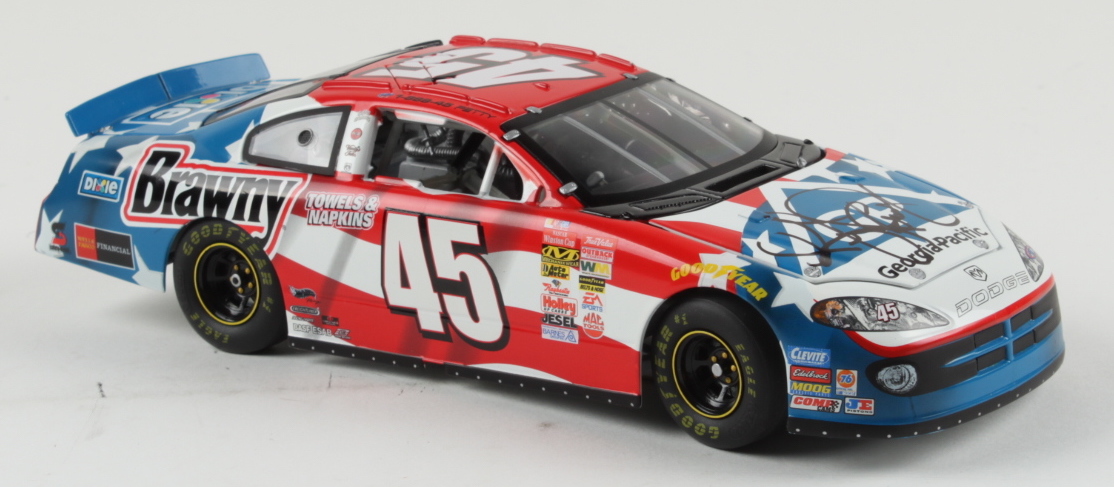 2003 #45 Dodge Charger 1:24 diecast car has been hand-signed by Kyle Petty. The car is limited edition out of 1,600 and comes in original packaging as shown.