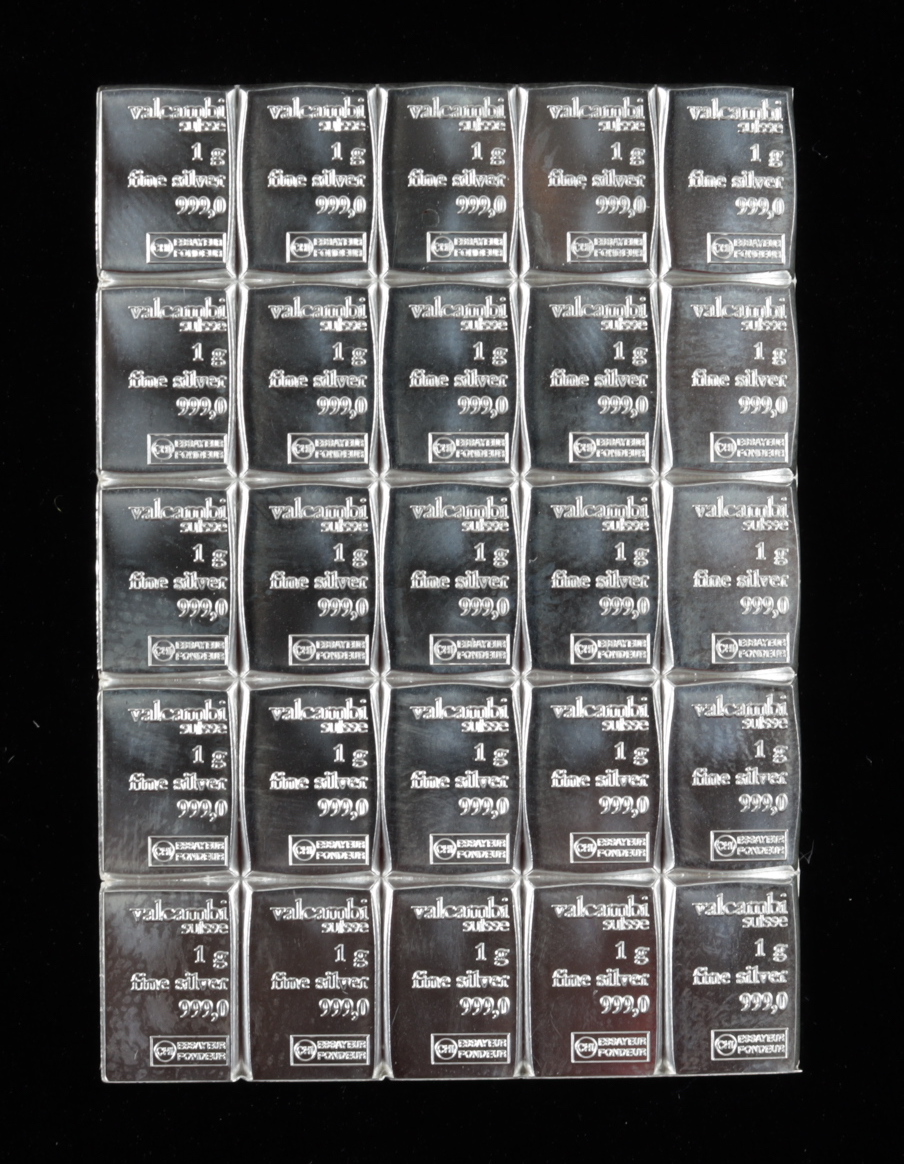 Uncut Sheet of (25) 1 Gram Silver Valcambi Bullion Bars