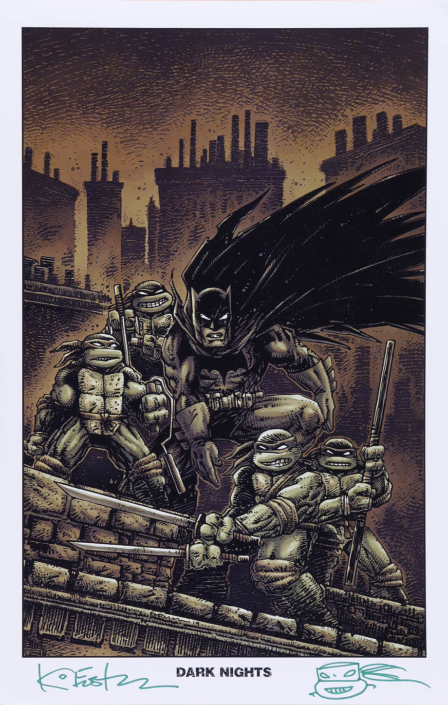 Kevin Eastman Signed "Dark Knights" 11x17 Photo with Hand-Drawn Sketch (Beckett COA) (See Description)