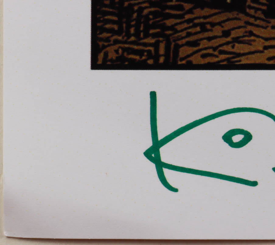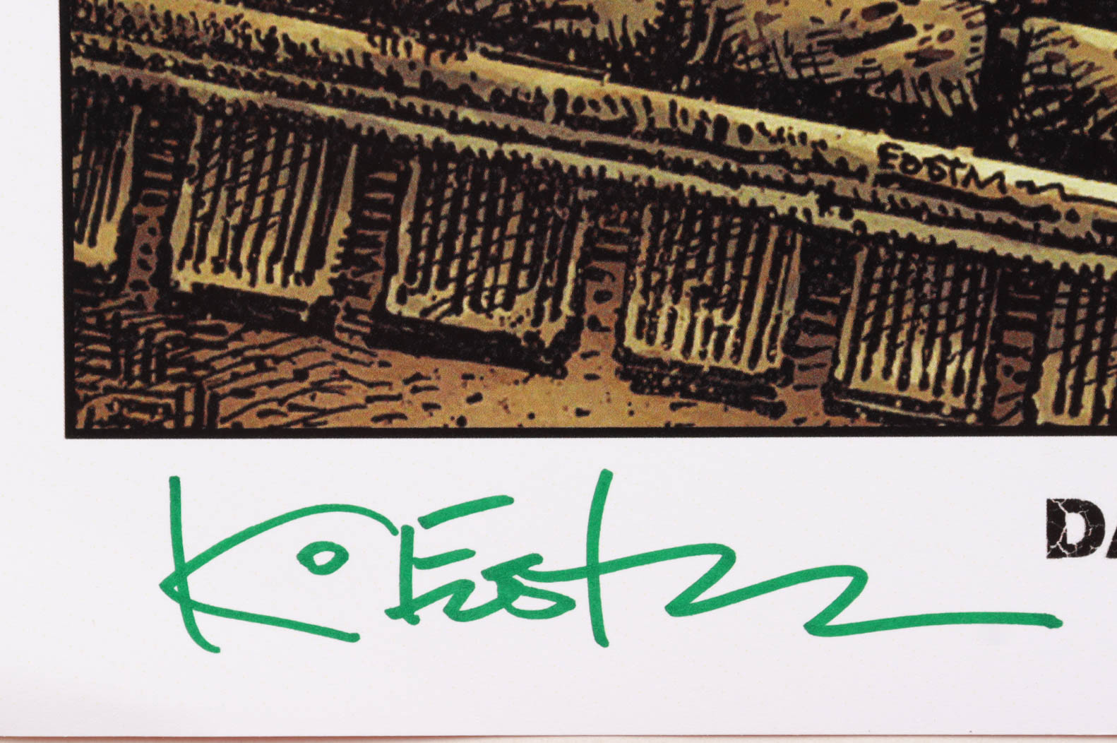 Photo measures 11" x 17" in size and has been hand-signed by Kevin Eastman. Please note, the bottom right corner and the bottom left corner of the photo are bent.